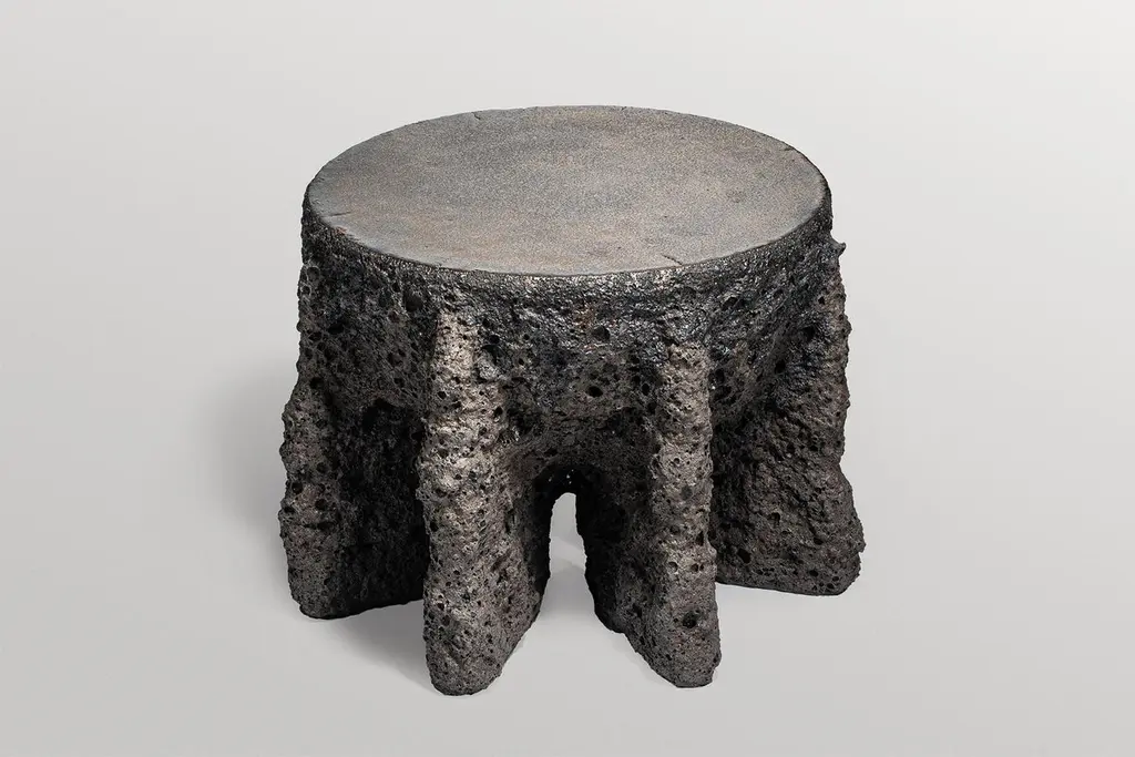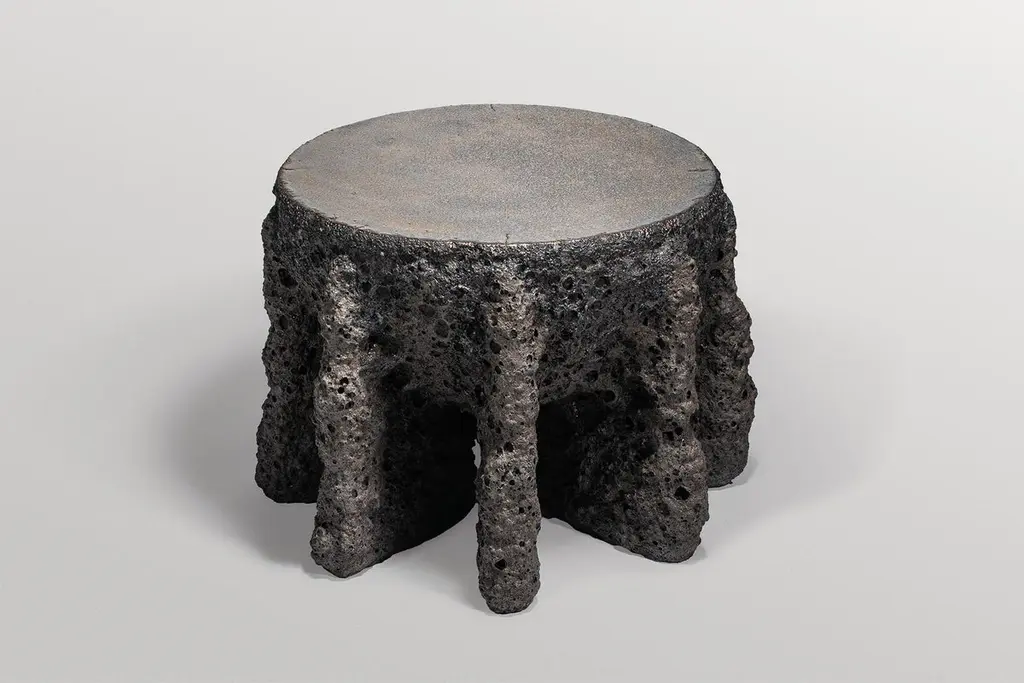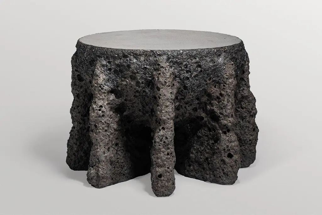 Contemporary Rough Form Dark Grey Ceramic Low Side Table By Niclas Wolf