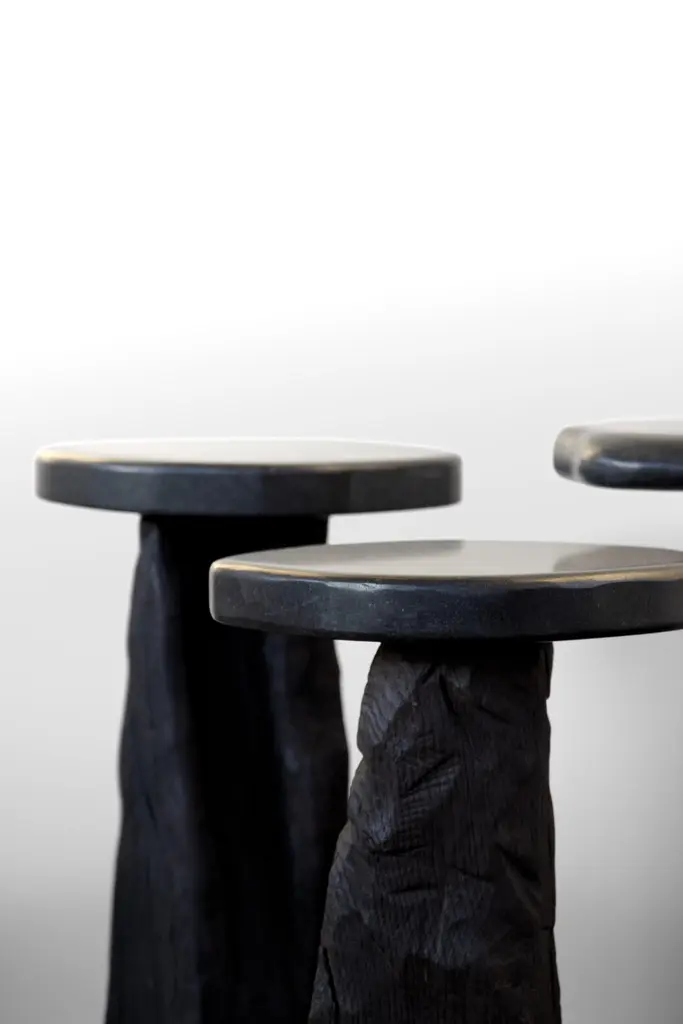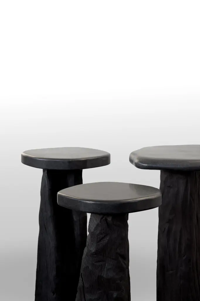 TAVO Side Table by German contemporary design studio Eichkorn. Material: Nero Asoluto stone and Burnt Oak WoodStandard size: H.52 x 35 cm - Customizations are possible Visible price is for one unit Nero Asoluto and burnt oak. Fine and rough natural materials. More closeness to nature is impossible. The burnt oak harmonises with the dark, strong tone of the natural stone.You can literally feel this. Whether as a single piece or together as a set, you can place them however you want.About the designer: Eichkorn stands for sculptural and aesthetic furniture made from the finest Materials with excellent Craftsmanship.Driven by the process of creation, acting out of love for quality and inspired by the greatest of all artists - nature -we’re giving art a practical purpose.In our almost 100 years old workshop innovative ideas are combined with traditional spirit. Each of our craftsmen practices his profession very passionately - this creates unity in terms of our quality standard: perfection.We are proud to be able to work with such experienced, exceptional craftsmen. As a manufactory we are completely free in our production. This allows us to respond flexibly to our customers' wishes."We live for creating sculptural and aesthetic furniture. Unique materials and a love for authentic craftsmanship bring each of our works to life. That's the magic we're all about."