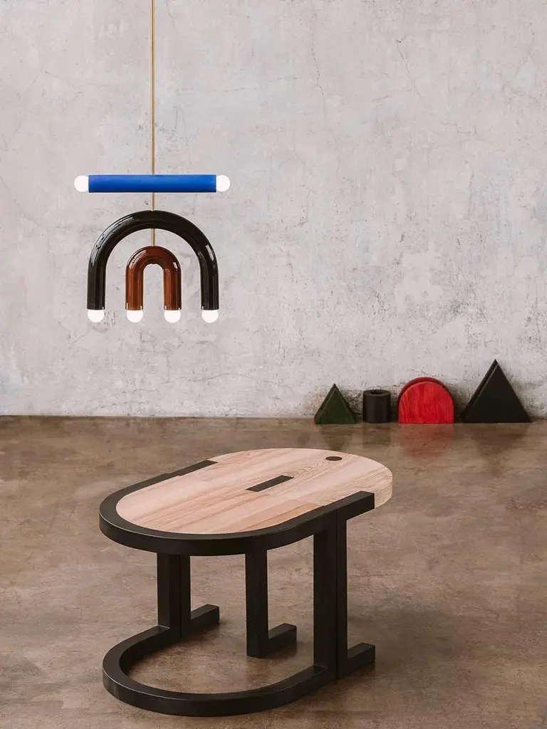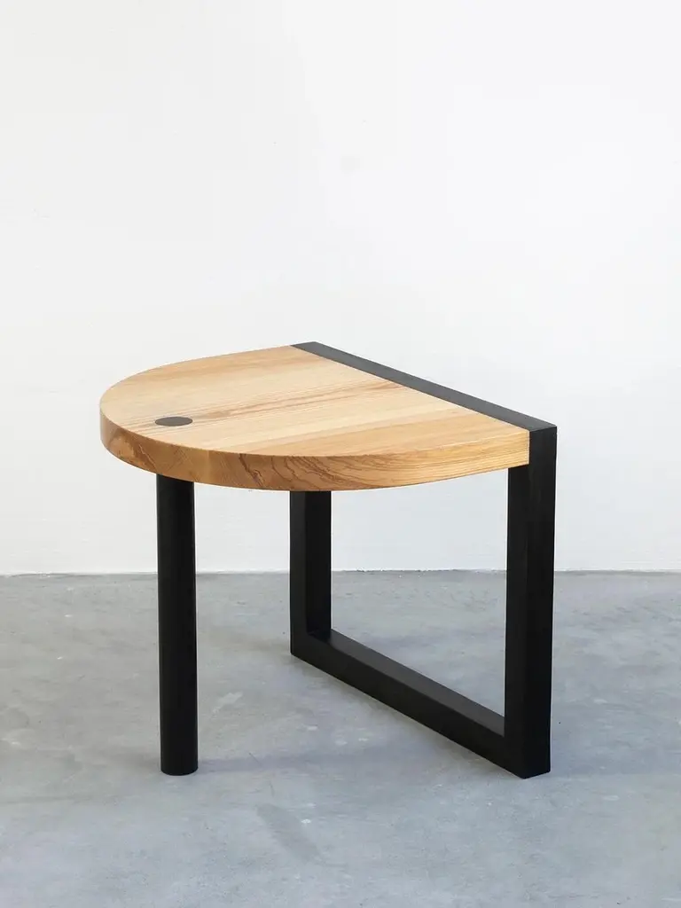TRN Side TableModel shown: TRN 1, Black and natural woodMaterial: Ash wood, covered with a natural wax Care: Clean with a dry cloth, no water, no direct sunlight Dimensions: H: 45 cm (17,7")W: 55 x 44 cm (21,6 x 17,3")_______________________Pani Jurek is a Polish artist and designer who as developed a beautiful collection of lightings, tables and mirrors called 'TRN' as a tribute to the painter Jan Tarasin. Calligraphic forms, bold colors, fine materials and craft techniques. The new TRN collection of Pani Jurek is a homage to the art of Jan Tarasin.A fascination with Jan Tarasin paintings and graphics was a starting point for the creation of the whole collection. Tarasin was interested in the world of objects. He began with a realistic record of objects that he simplified and reduced until a system of abstract signs was formed. In her latest collection, Pani Jurek reverses this process, turning ideograms into things again. Her three dimensional objects have a simple calligraphic form so they can play and talk together as if they were letters from a non-existent alphabet.