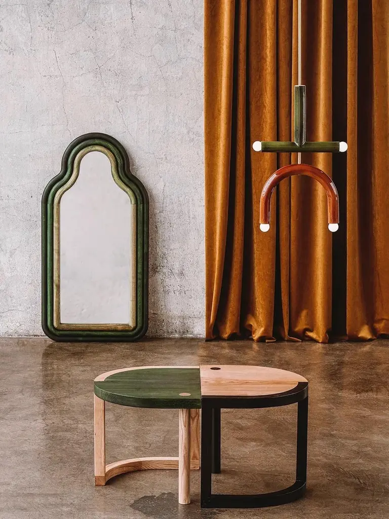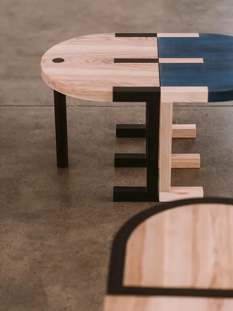 TRN Side TableModel shown: TRN2, Black and natural woodMaterial: Ash wood, covered with a natural wax Care: Clean with a dry cloth, no water, no direct sunlight Dimensions: H: 45 cm (17,7")W: 55 x 44 cm (21,6 x 17,3")_______________________Pani Jurek is a Polish artist and designer who as developed a beautiful collection of lightings, tables and mirrors called 'TRN' as a tribute to the painter Jan Tarasin. Calligraphic forms, bold colors, fine materials and craft techniques. The new TRN collection of Pani Jurek is a homage to the art of Jan Tarasin.A fascination with Jan Tarasin paintings and graphics was a starting point for the creation of the whole collection. Tarasin was interested in the world of objects. He began with a realistic record of objects that he simplified and reduced until a system of abstract signs was formed. In her latest collection, Pani Jurek reverses this process, turning ideograms into things again. Her three dimensional objects have a simple calligraphic form so they can play and talk together as if they were letters from a non-existent alphabet.