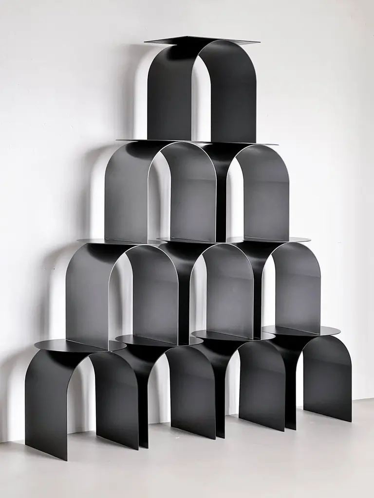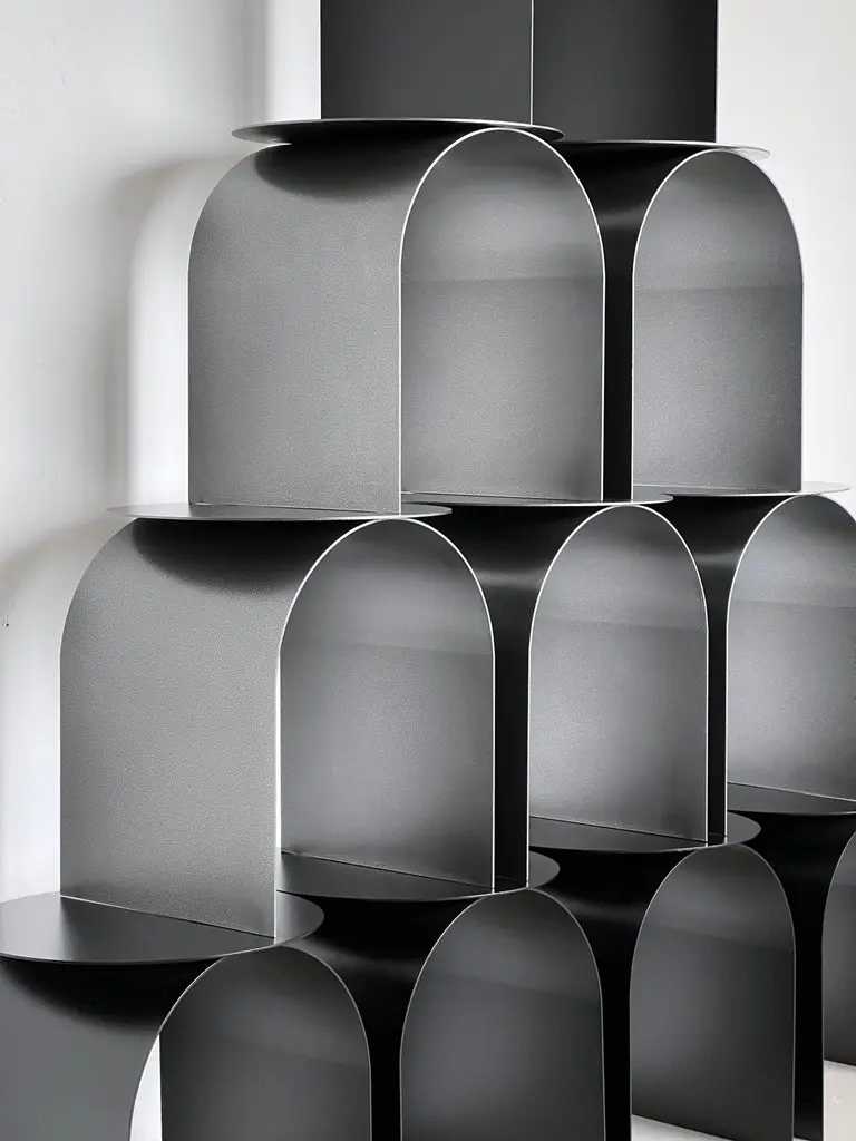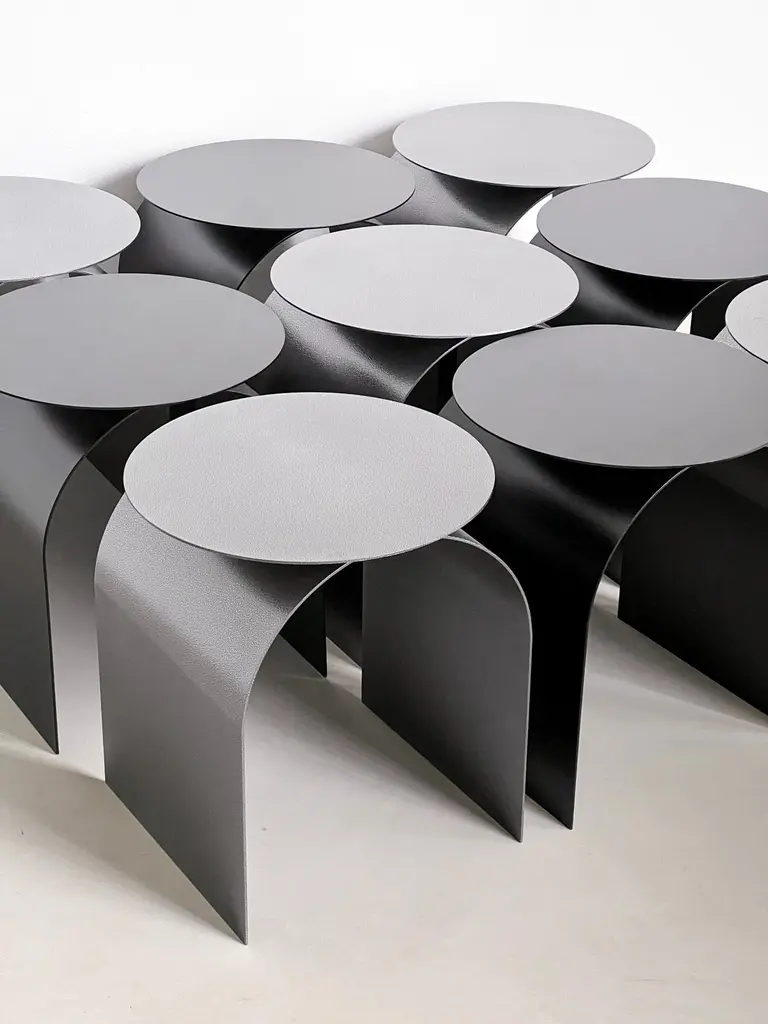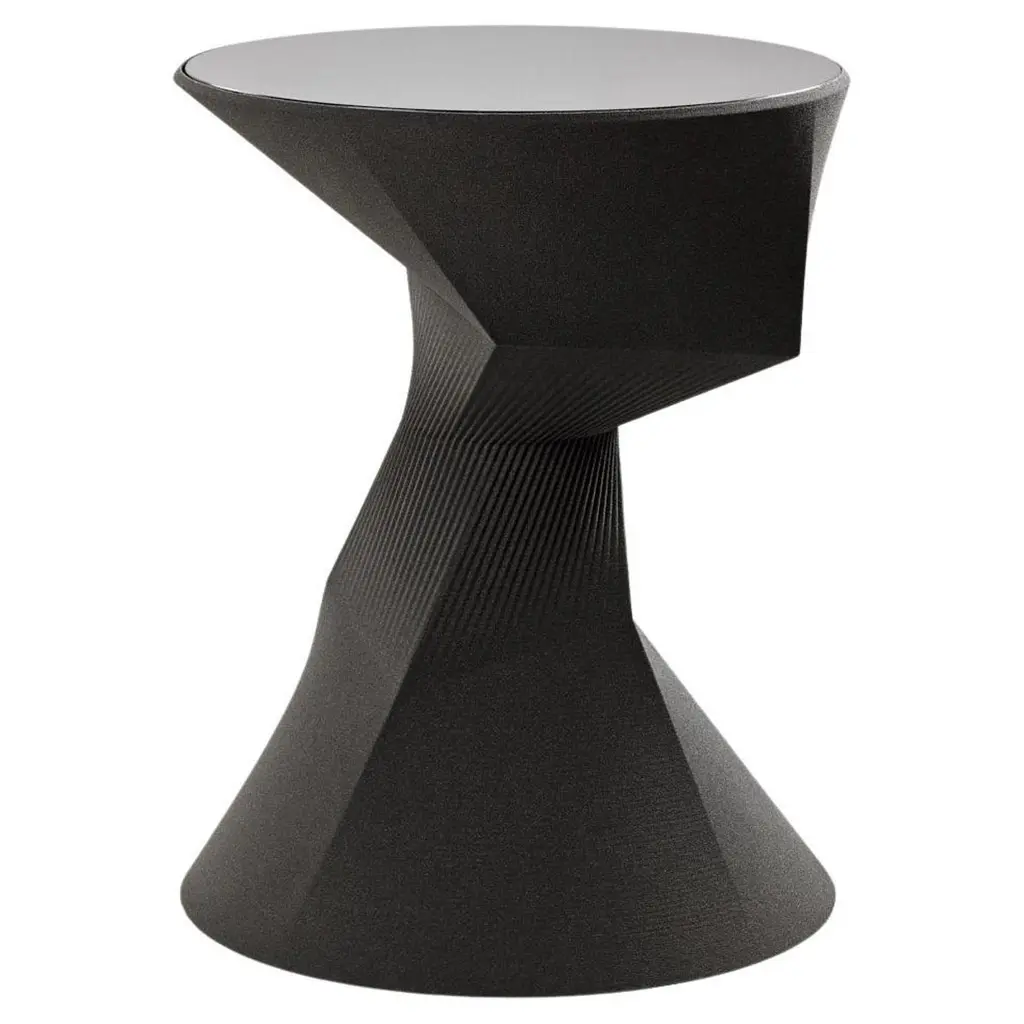 Architectural Side Table - Collectible Stool - Neoclassical DesignThe neoclassical essentiality of the stool is inspired by the iconic architectures of Andrea Palladio. Crafted in air-thin metal and finished in vivid colours, the Palladium side table is defined by the play of light and shadows on its surface.This version, finished in "Hammered Gunmetal Grey", goes well with a modern or industrial style interior. It will create a striking contrast with a white toned ambient, but also go well along a darker interior.