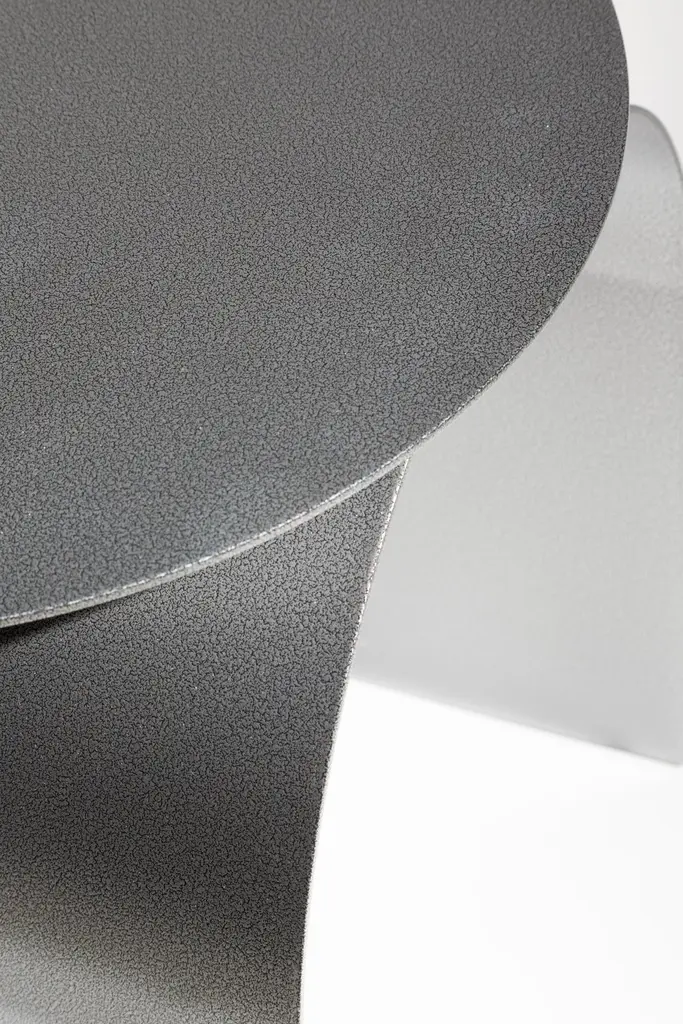 Contemporary Spinzi Palladium Metal Side Table In Hammered Grey With Round Top