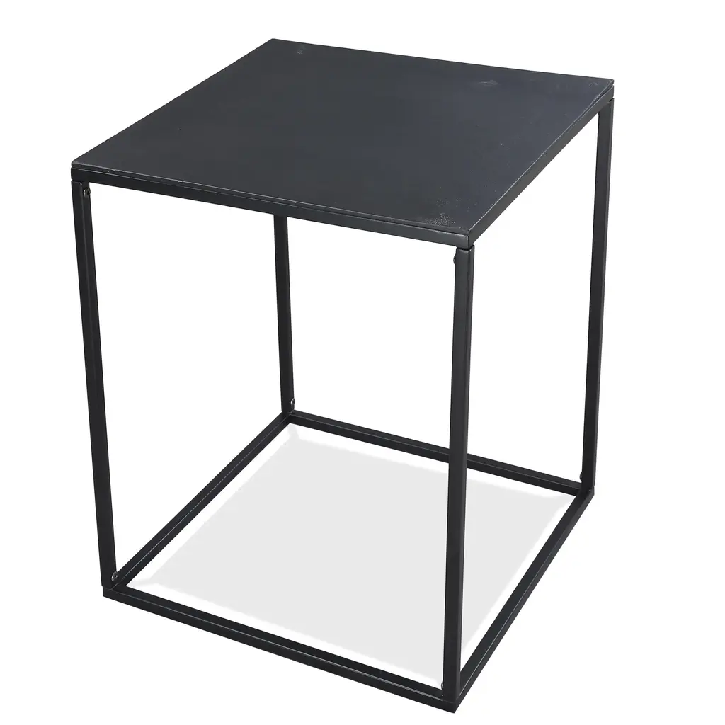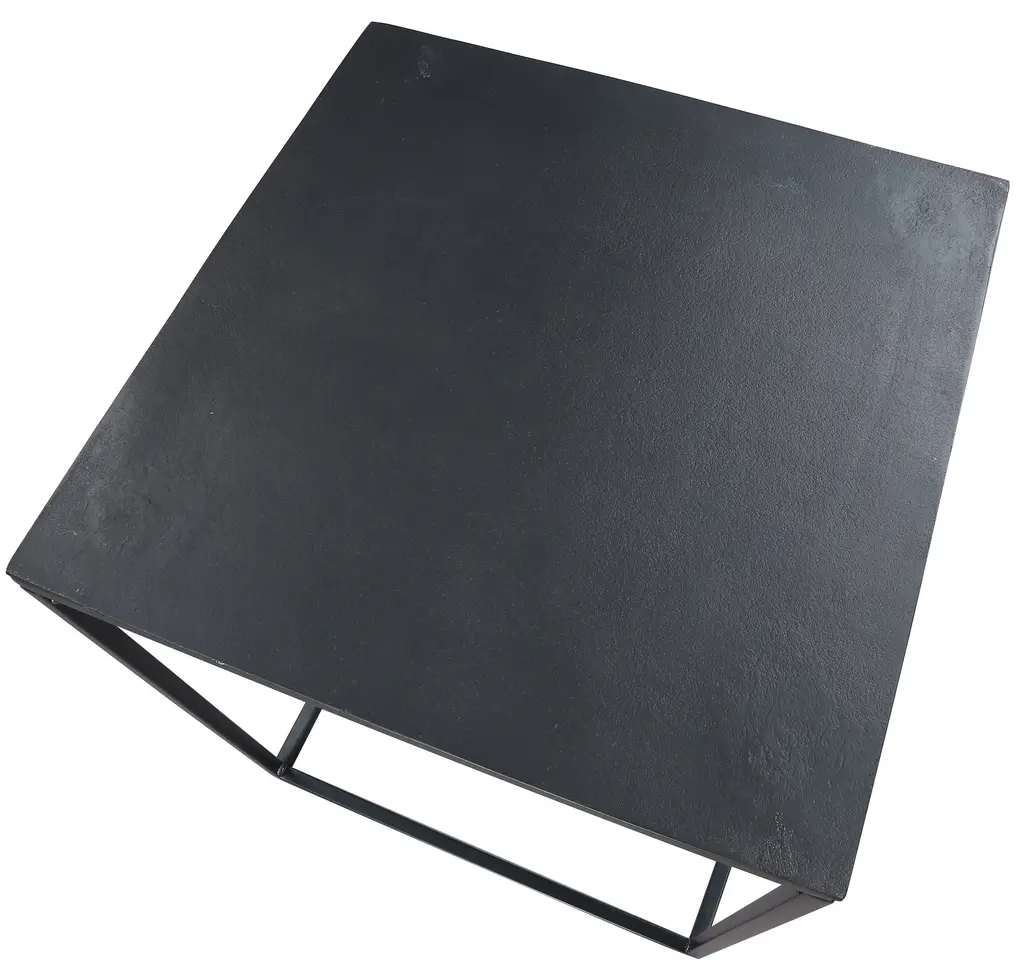 This contemporary square end table is sure to modernize your space and provide an interesting piece of visual interest. A simple silhouette paired with ultra-slim table legs and base crafts a unique but not overwhelming aesthetic. The antique charcoal color and sleek top give your space a modern makeover without compromising on visual style.
