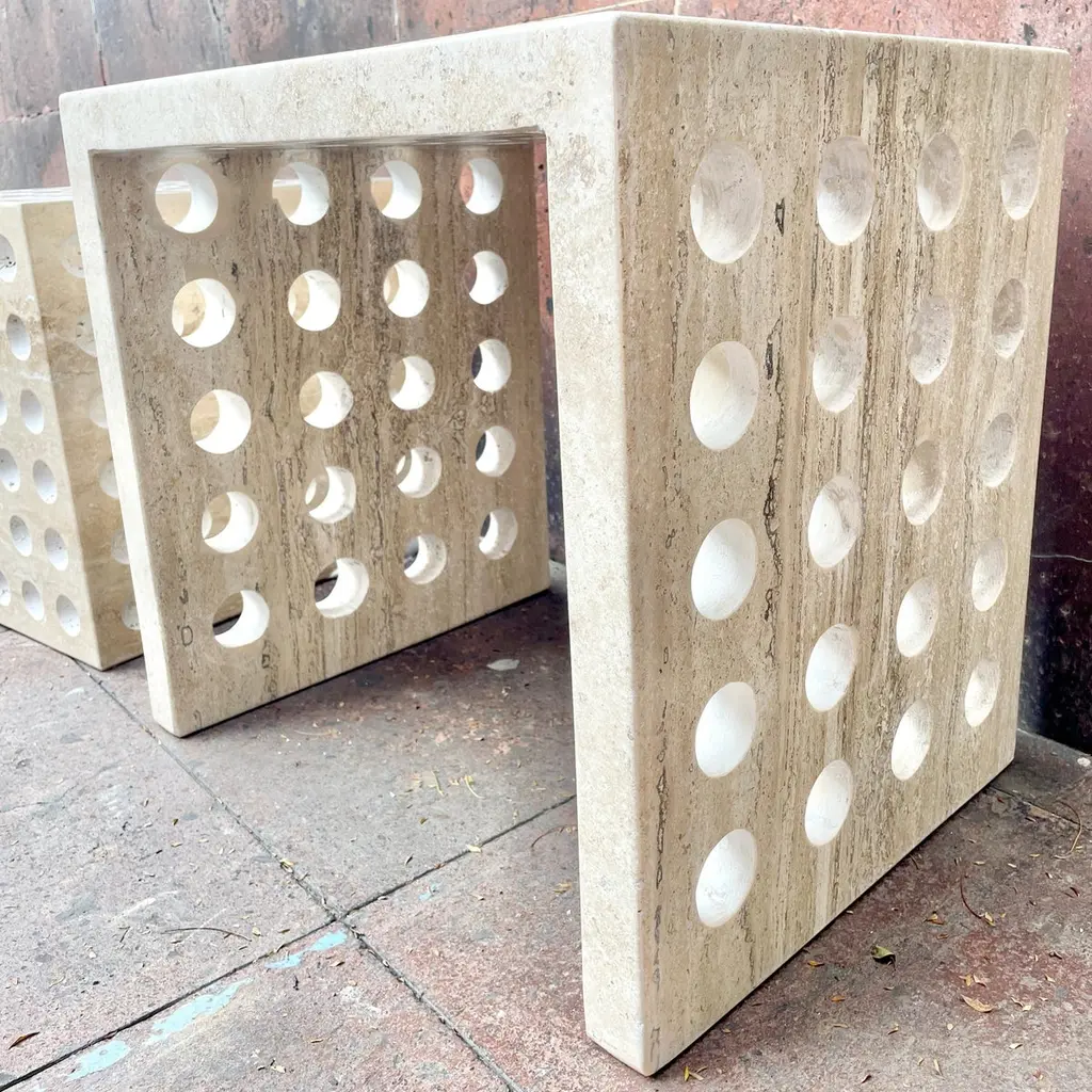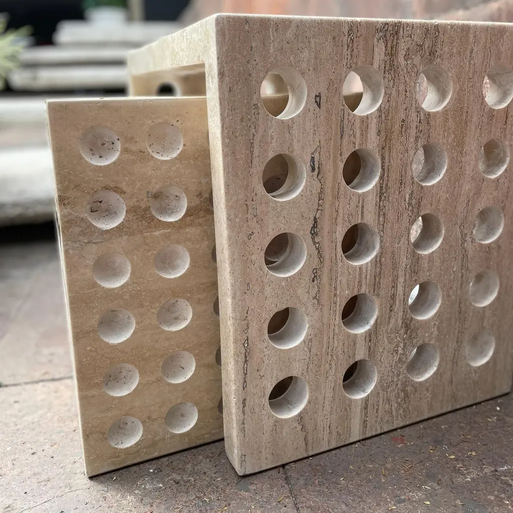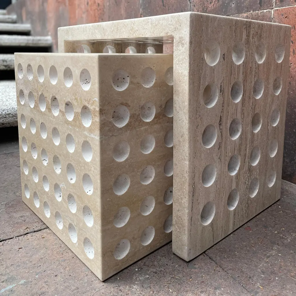Contemporary Travertine Cube Side Table, Hive Ii By Paola Valle