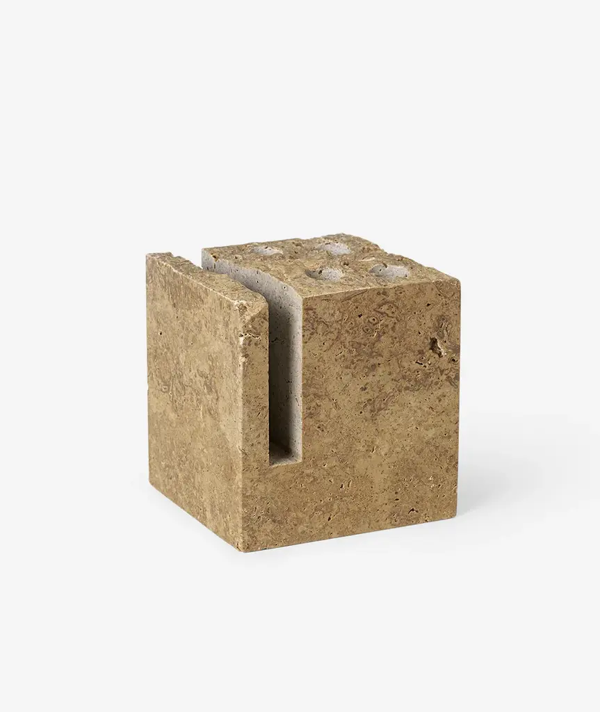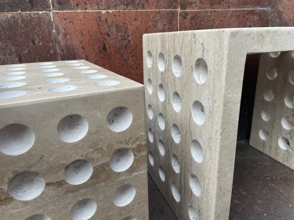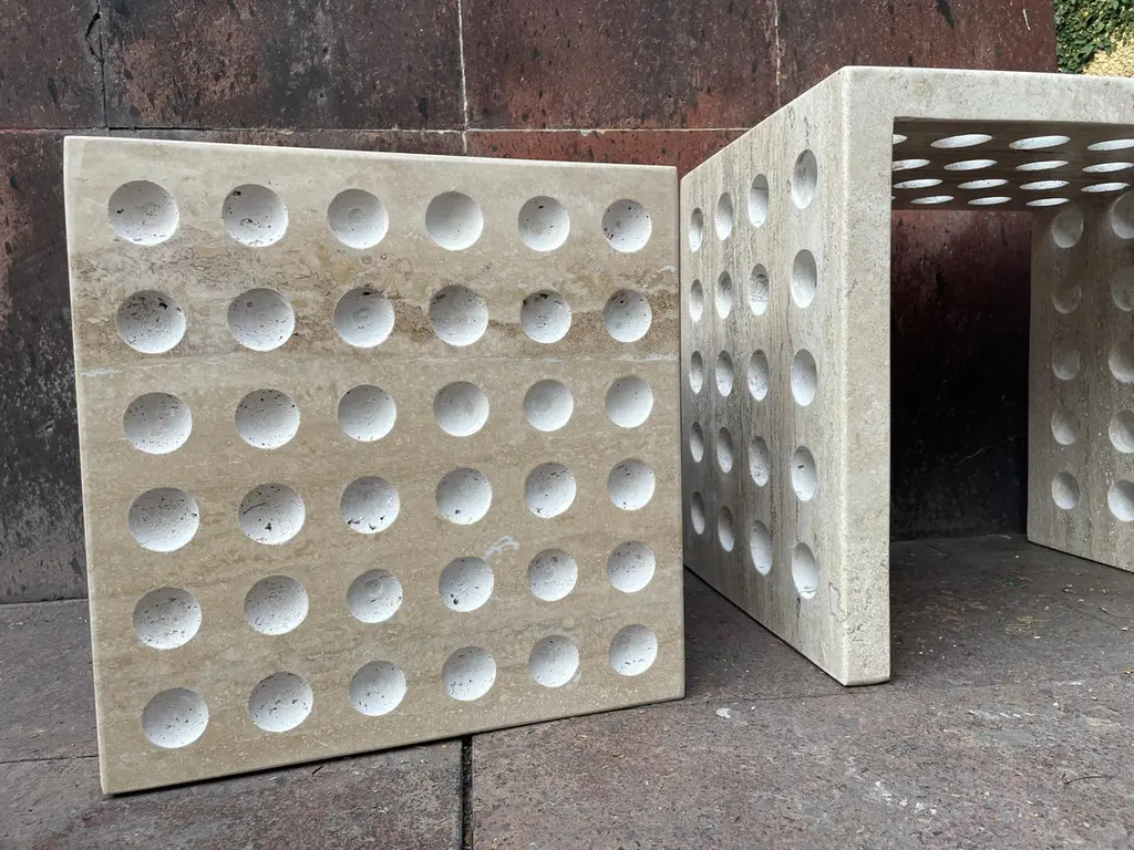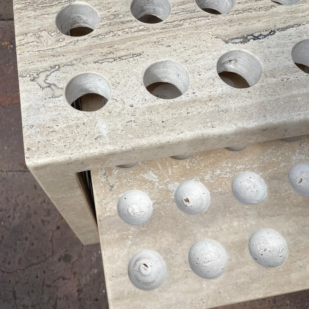 Contemporary Travertine Cube Side Table, Hive Ii By Paola Valle