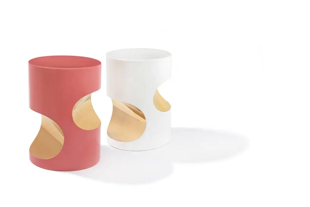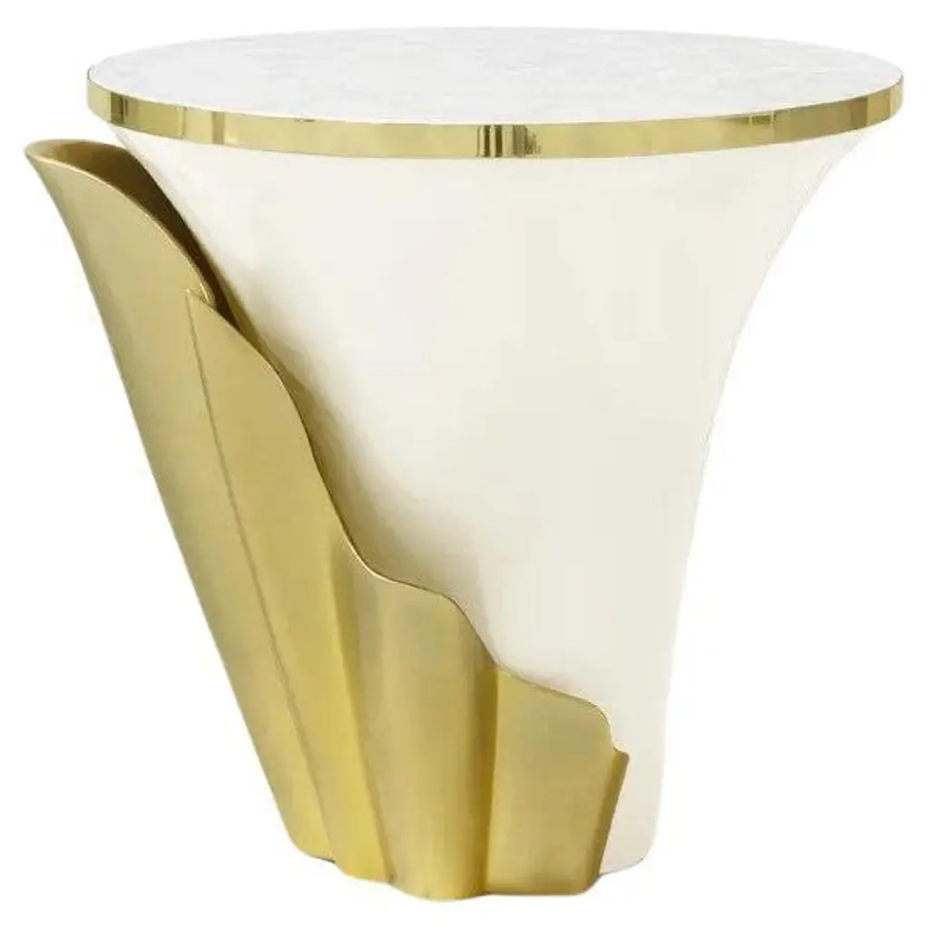 Contemporary White And Gold Ceramic Side Table By Hervé Langlais
