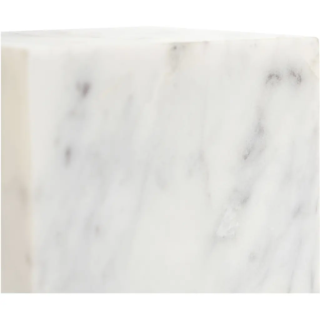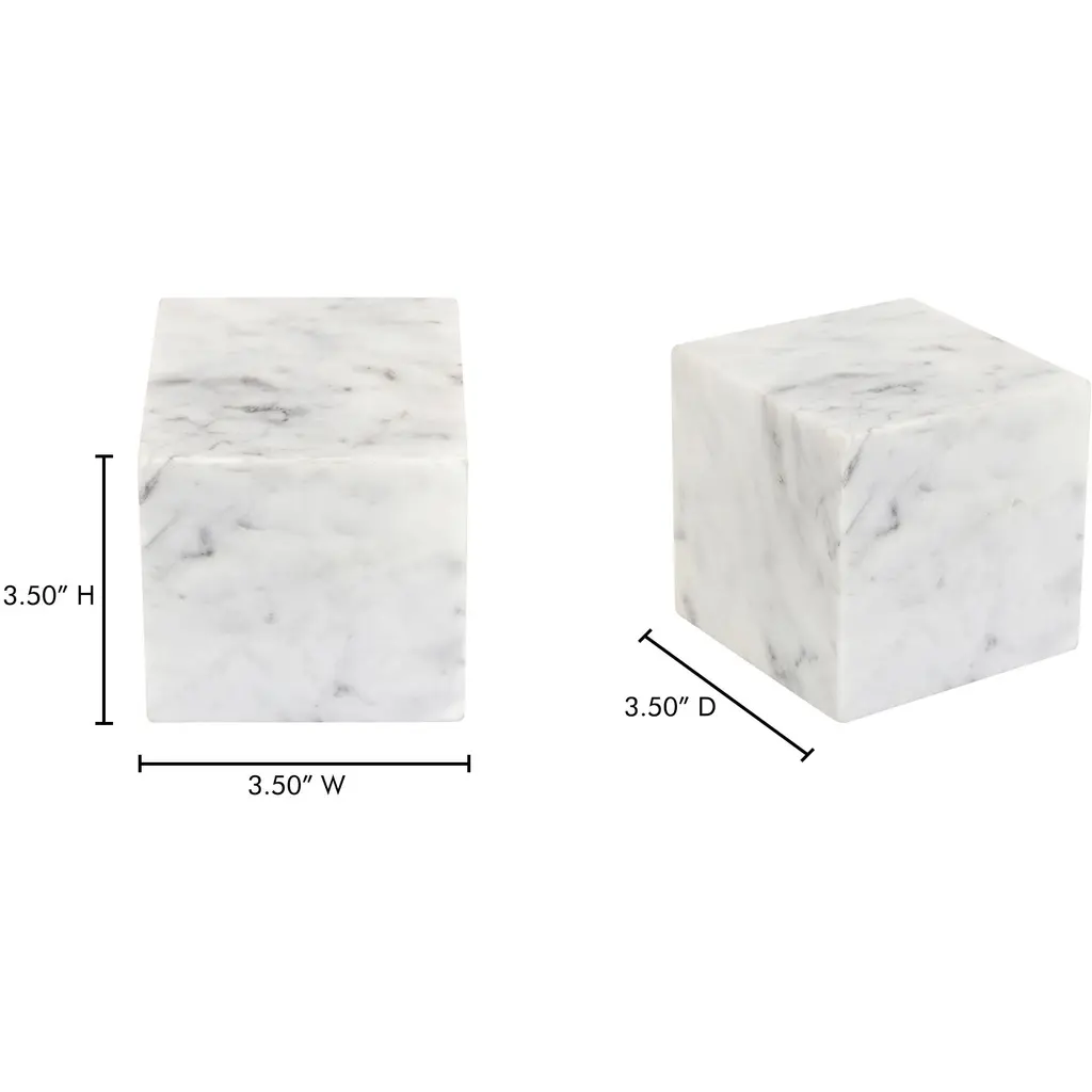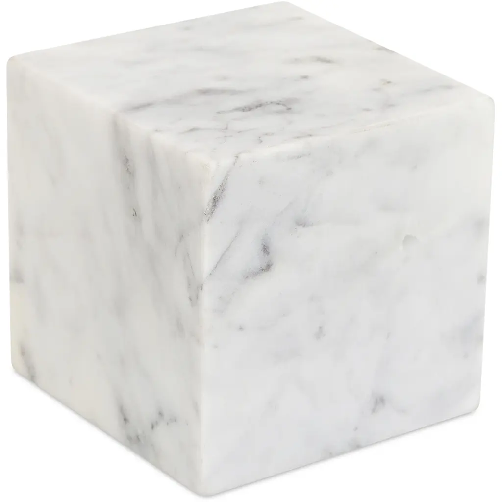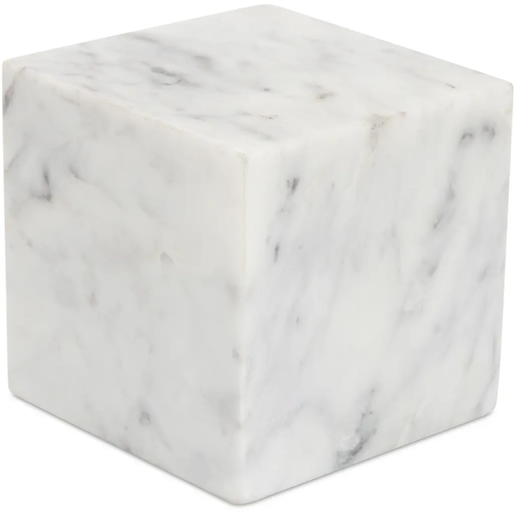 The Cora cube tabletop accent demands attention when placed atop a console table, bookshelf or coffee table. Mesmerizing purple veining dances across the facade of exquisite white Banswara marble, exuding an aura of refinement, while a black felt bottom ensures the utmost care to avoid scratching or damaging the tabletop.