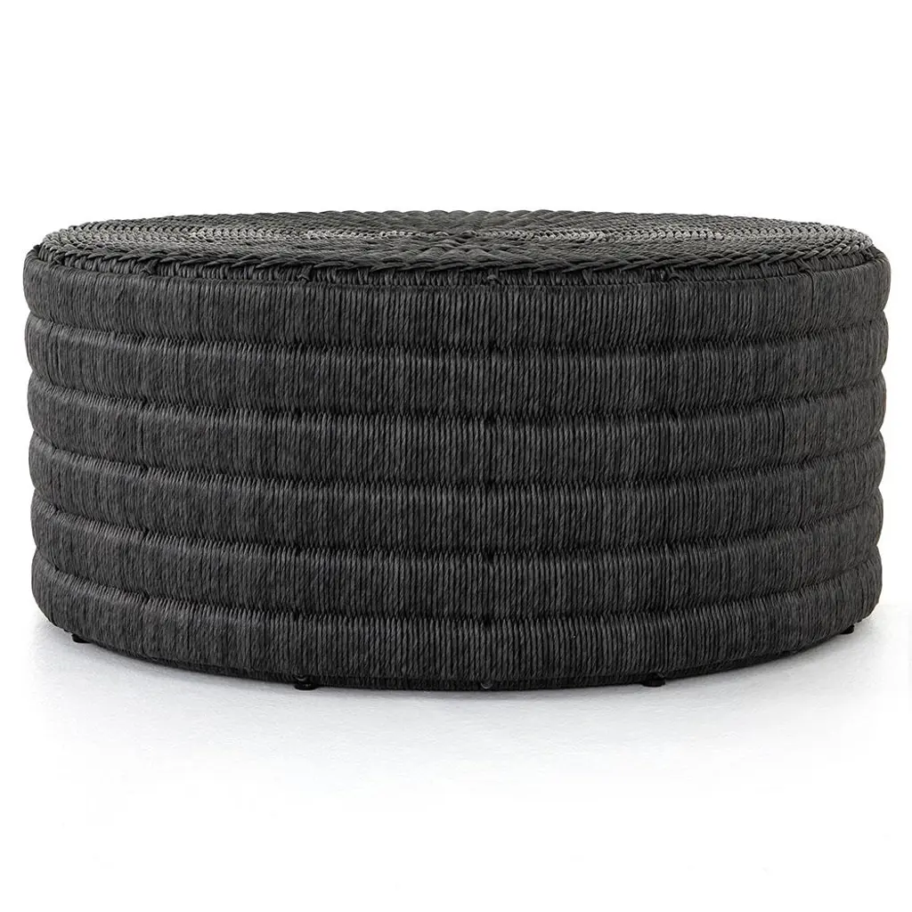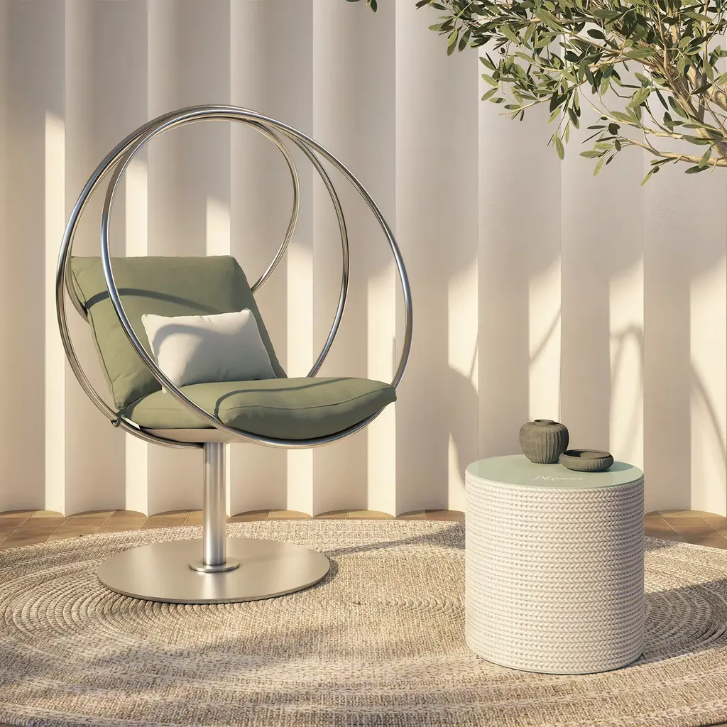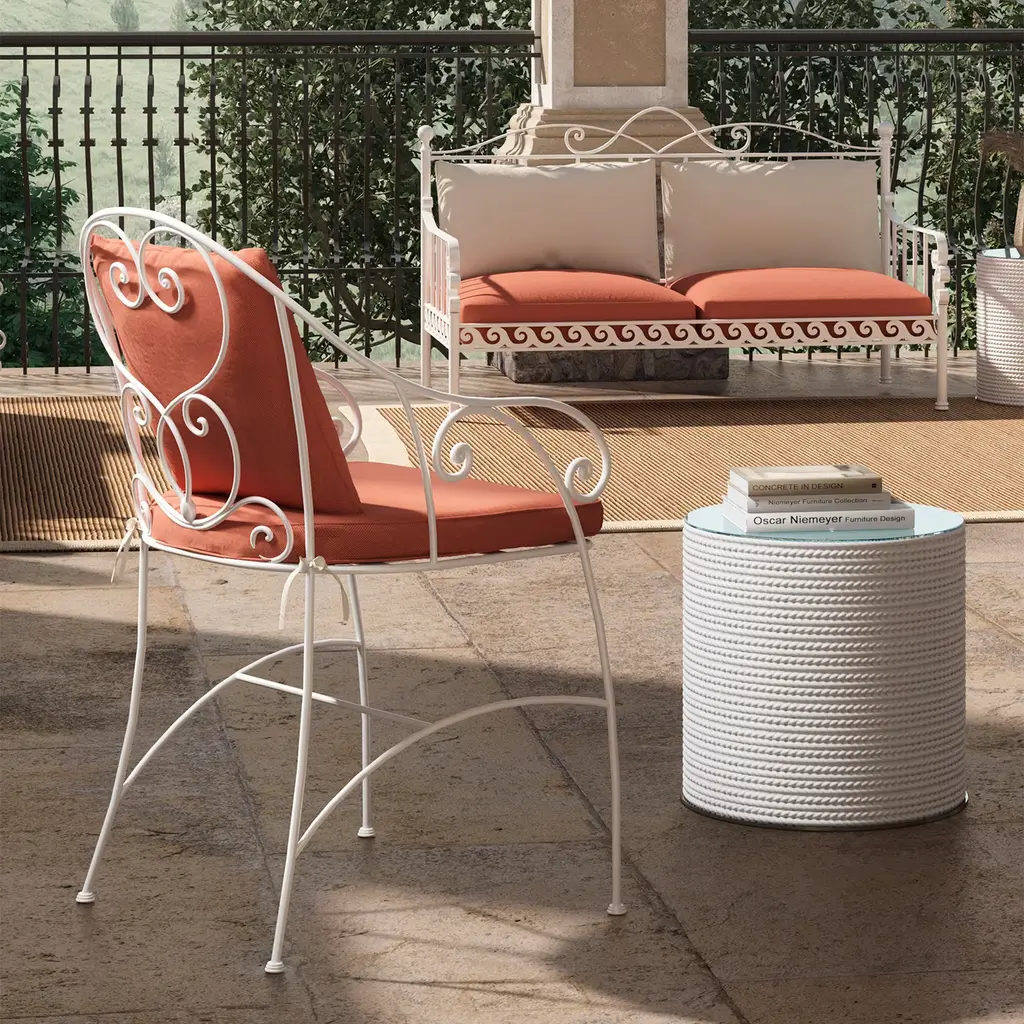 Refined references to nautical style and a fresh color palette recalling white shores lapped by azure waves reveal this oval-cut side table's marine inspiration. Ideally complementing a refined boat or beachfront decor, it is distinguished by white PLA (polyurethane) ropes tightly coiled around its oval-cut body. Also fit for occasionally laying a tray or placing a table lamp.