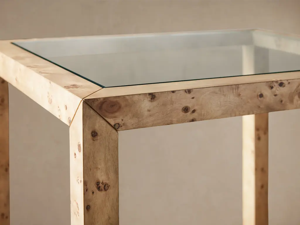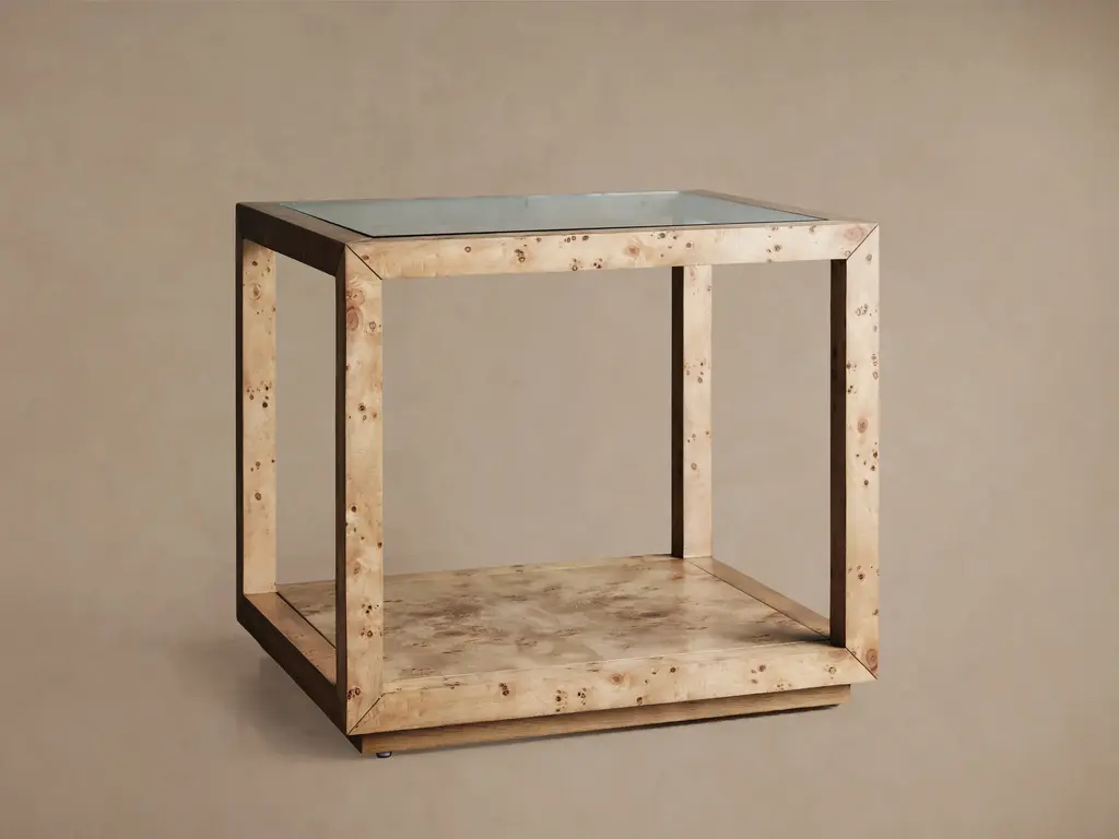 Making a dynamic statement in any room, our Corey Collection is crafted from eye-catching burl wood prized for its unique beauty. Resting on a modern platformed plinth, each Corey piece is hand-finished in warm color tones to illuminate every swirling wood grain detail.
