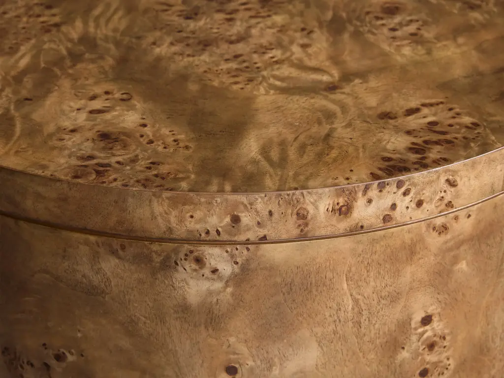 Making a dynamic statement in any room, our Corey Collection is crafted from eye-catching burl wood prized for its unique beauty. Resting on a modern platformed plinth, each Corey piece is hand-finished in warm color tones to illuminate every swirling wood grain detail.