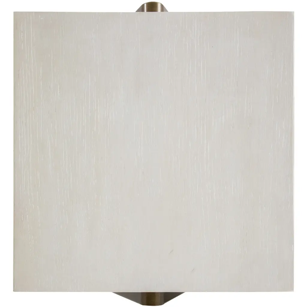 The Cornet Side Table is a masterful blend of geometric design and mixed materials. Featuring a striking contrast of brushed brass and cerused white oak finishes, this side table stands out with its sculptural silhouette. The table top is crafted from engineered wood overlaid with an oak veneer finished with a hand-applied technique to accentuate the grain of the wood. The unique shape and modern aesthetic make it a perfect accent piece for any contemporary living space. Natural material variations in color and pattern add to its distinctive charm, ensuring each piece is truly one-of-a-kind.