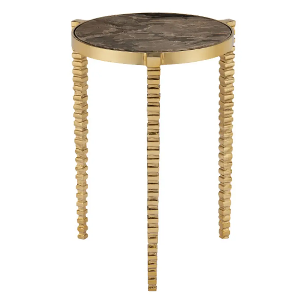 Corrado Cappuccino Marble Accent Table, Polished Brass/natural