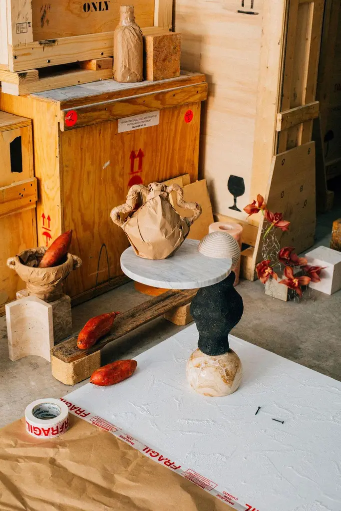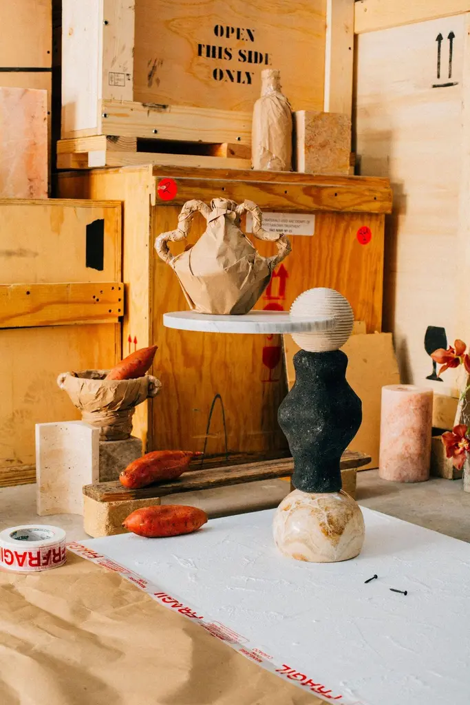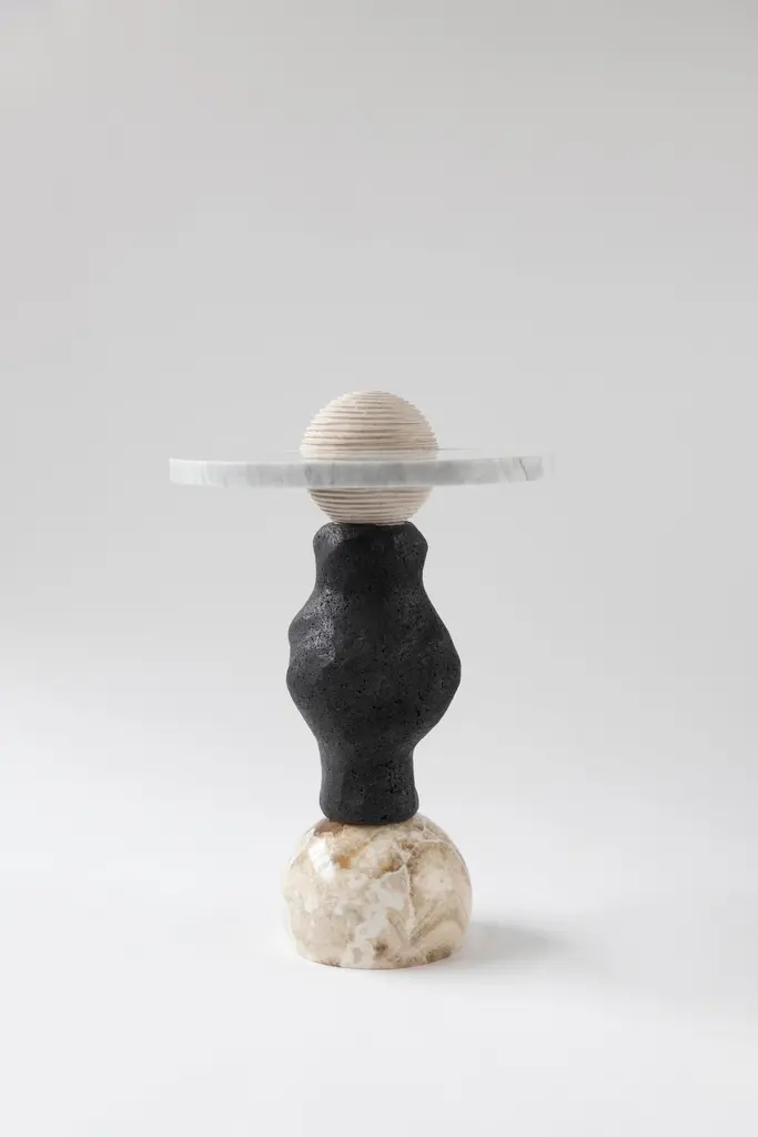 Materials: Brown onyx, lava stone, Bellagio marble and white Bego marbleHand crafted Side tableInspired by the enduring legacy of observing the cosmos, 'Cosmic Traces' evolves from the essence of 'Cosmic Relics.' While totems connect us to the spiritual and ancestral, 'Cosmic Traces' represents the physical manifestation of those energies in our daily lives. Each table in this collection is a bridge between the abstract and the tangible, embodying the progress from cosmic observation to human creation. The meticulous arrangement of stones mirrors the pathways of celestial bodies, tracing the lines of influence that shape our world. As these elements come together, they signify the evolution of our shared cultural heritage, from the mystical to the practical, leaving behind a legacy of unity and purpose.Marble and onyx are natural materials; variations in markings and coloration are normal, adding to the unique beauty of each piece. Natural hairline cracks may also occur within the stone. These are inherent characteristics of marble and are not considered flaws.