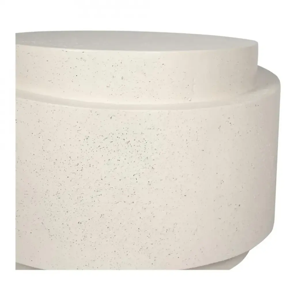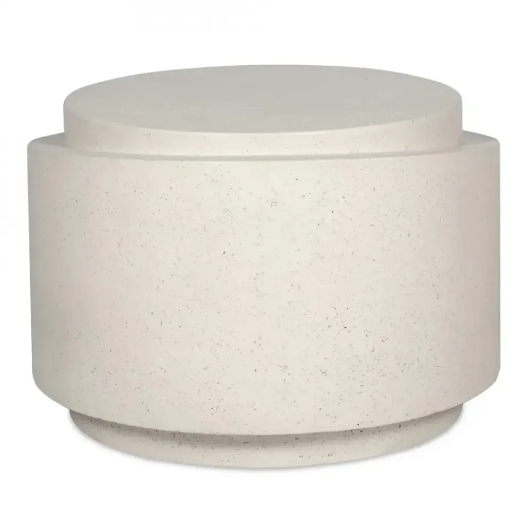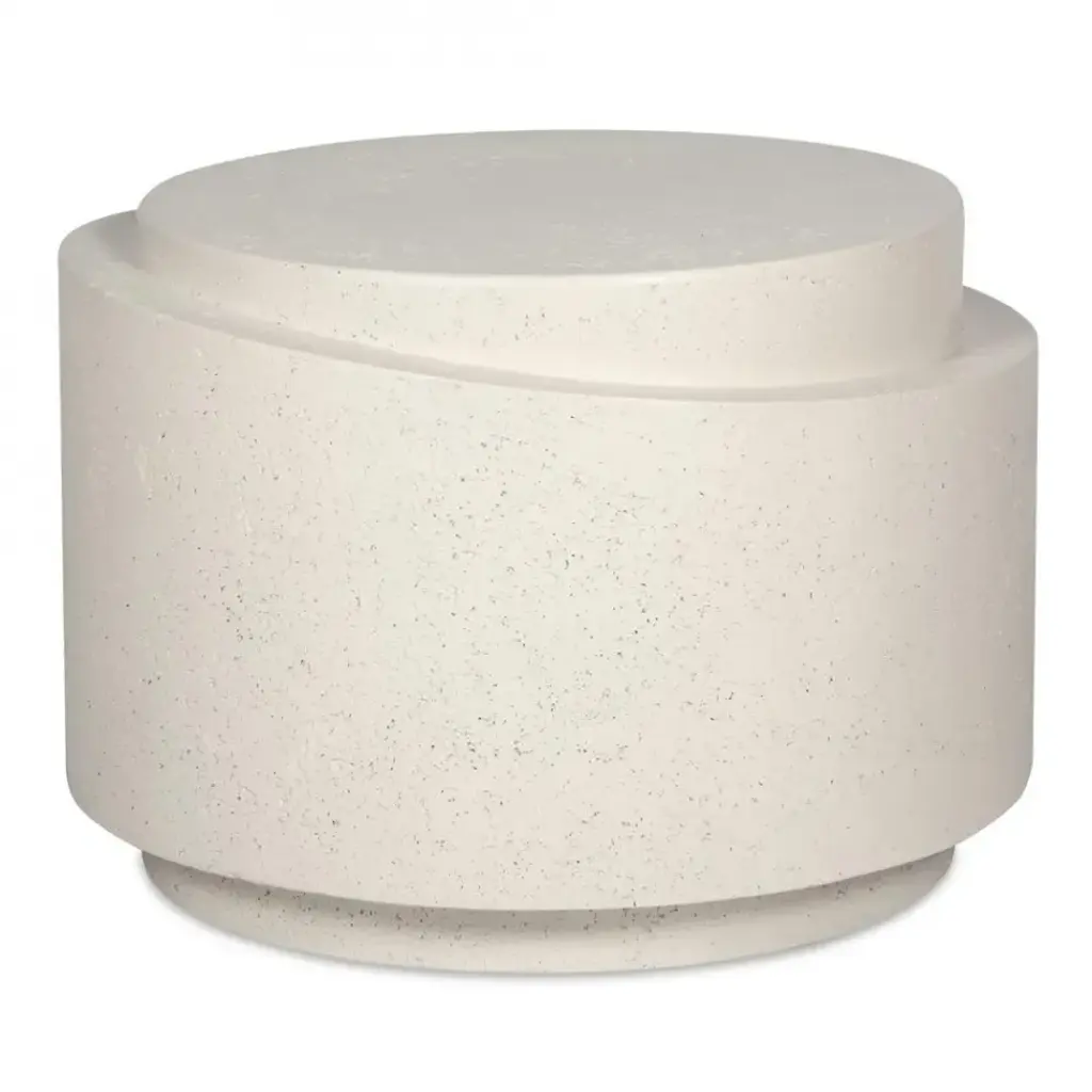 Modern design meets the raw beauty of nature in the Cosmo outdoor accent table. Its organic, lava-stone-like finish imbues a sense of earthiness rarely found in furniture. Created from a mix of concrete and finely selected small stones under 3mm is both visually interesting and tactile. We recommend covering and storing the table indoors during adverse weather conditions to preserve its unique texture and appearance.
