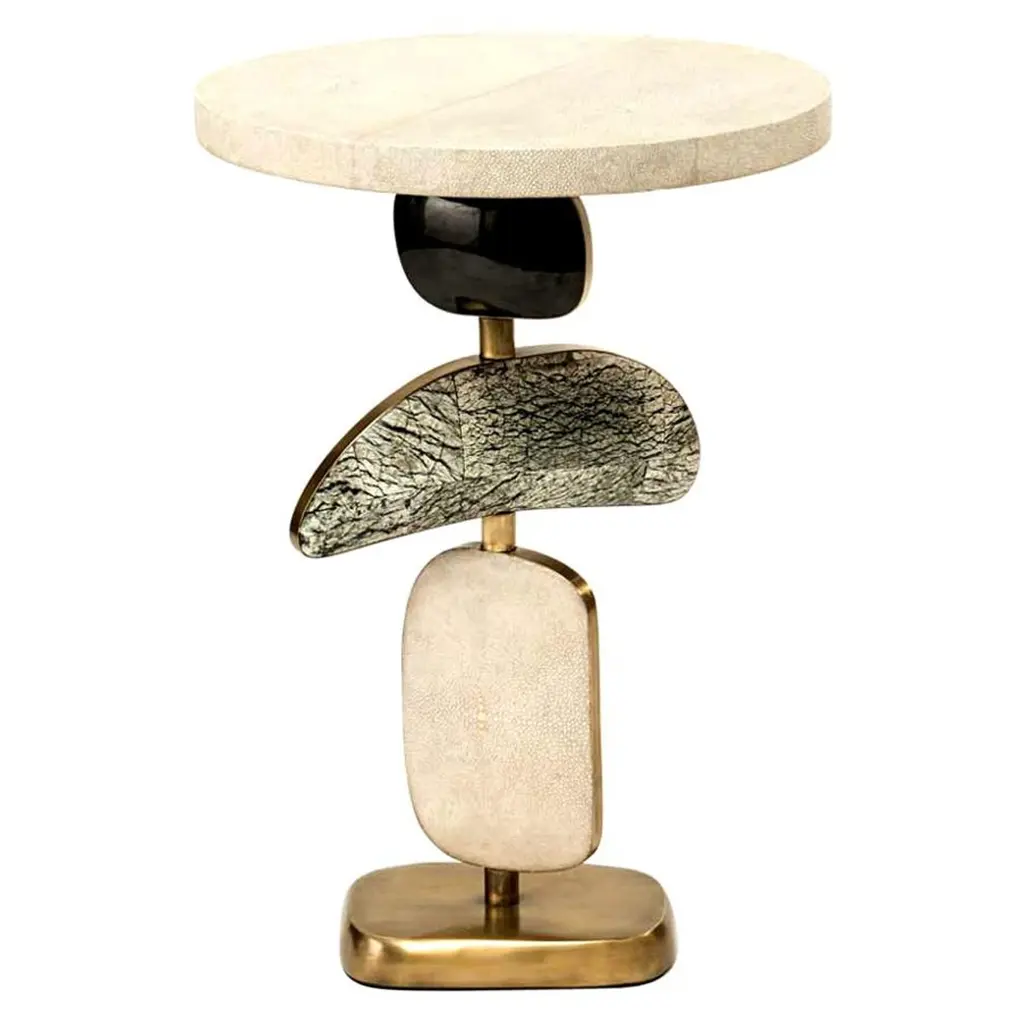 Cosmo Side Table In Shagreen, Lemurian & Bronze-Patina Brass By Kifu, Paris