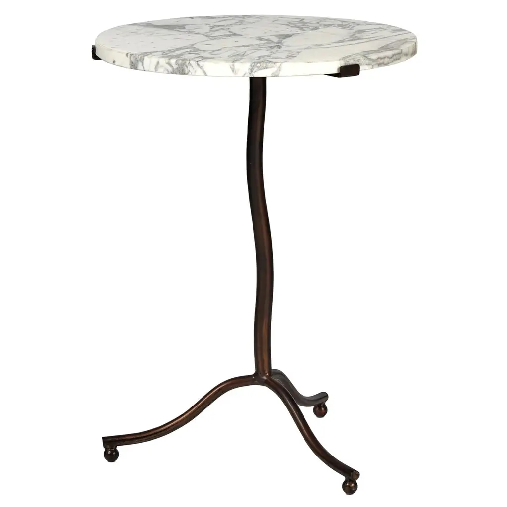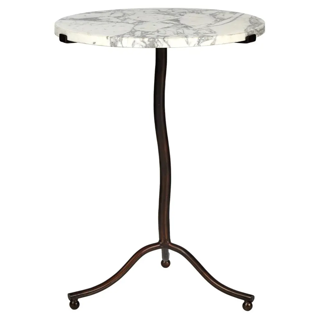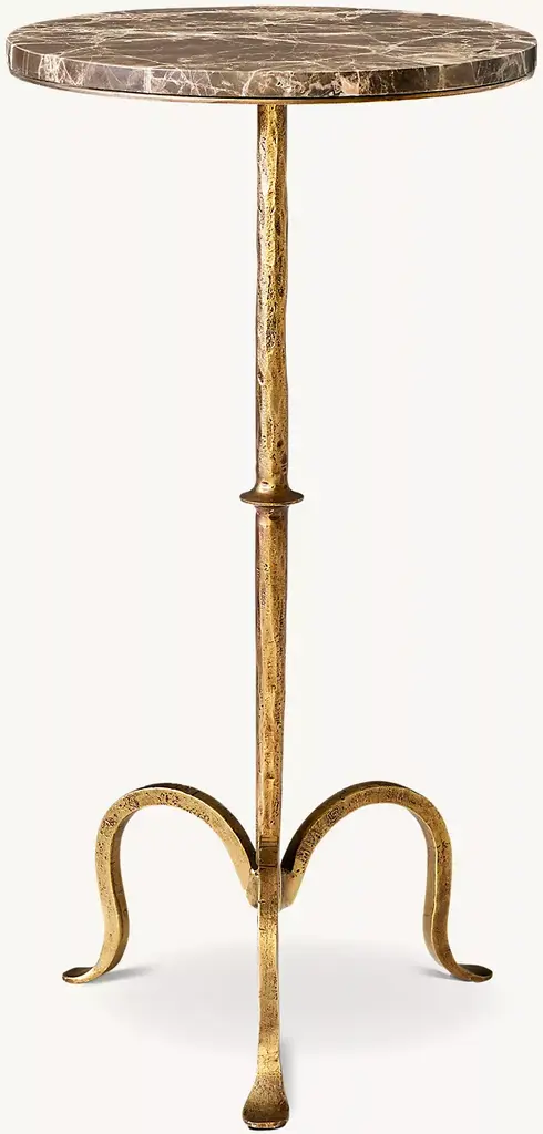 A tripod base in metal rises gracefully to support a top comprised of an elegant circle of natural stone. The look is easy, elegant, and timeless, and integrates beautifully with virtually any décor.