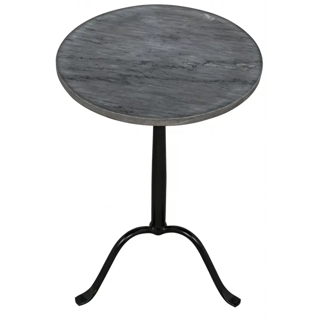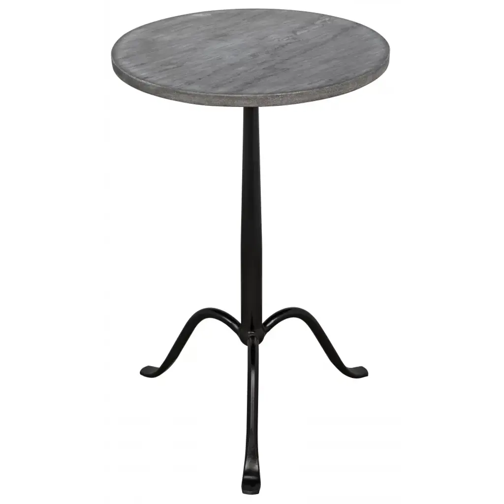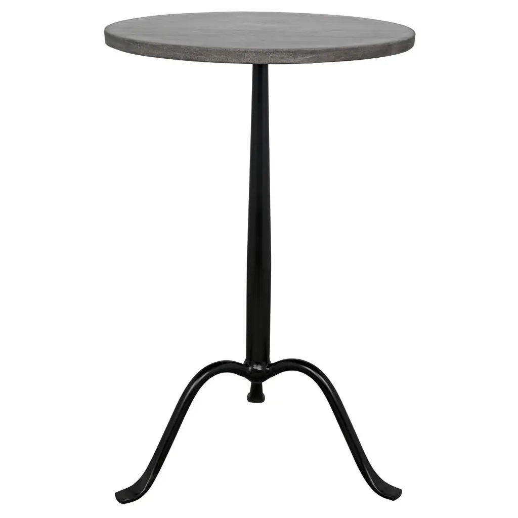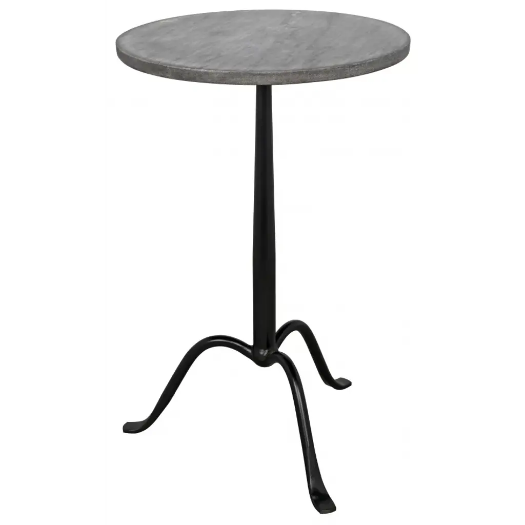 A tripod base in metal rises gracefully to support a top comprised of an elegant circle of natural stone. The look is easy, elegant, and timeless, and integrates beautifully with virtually any décor.