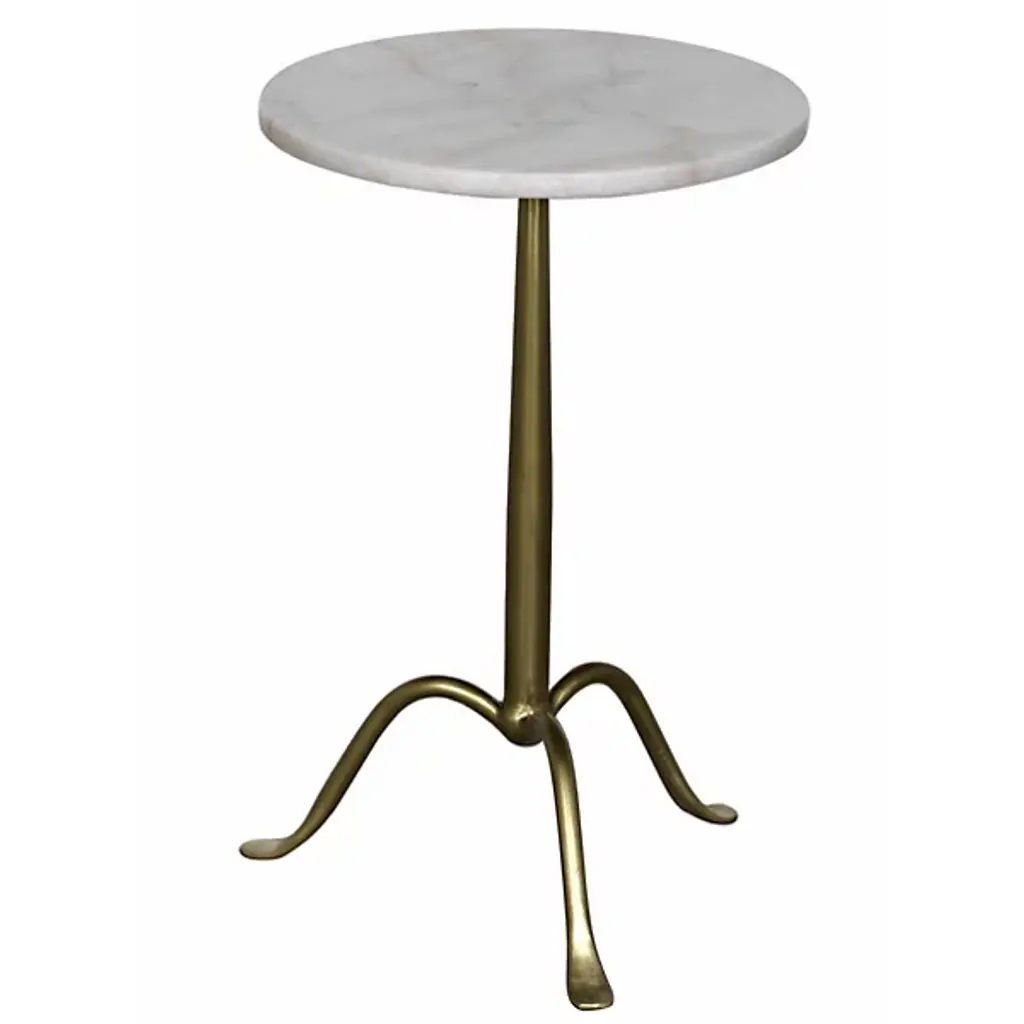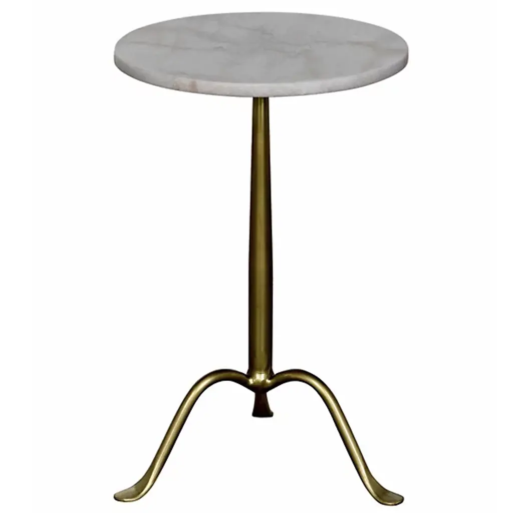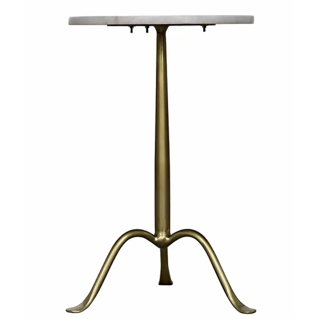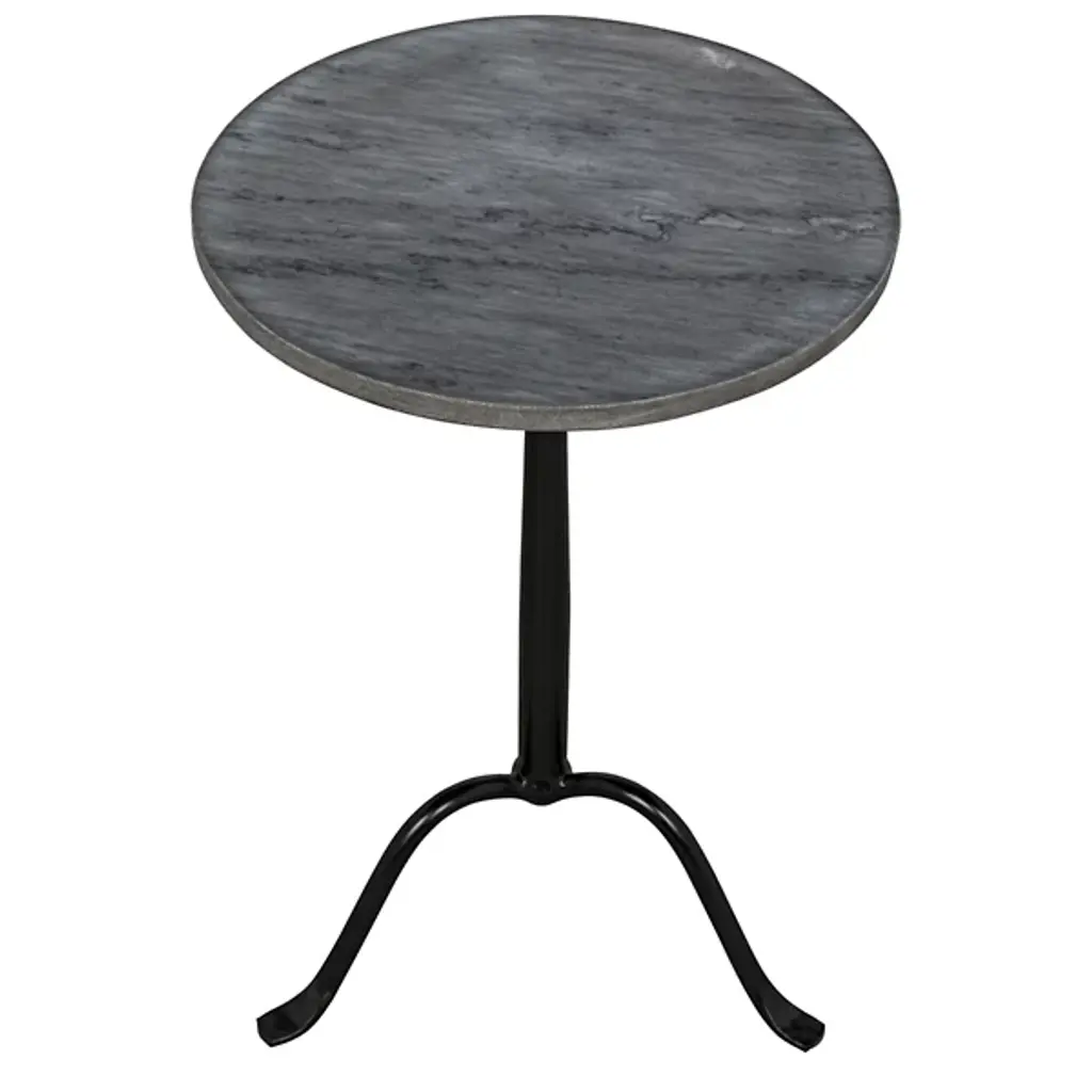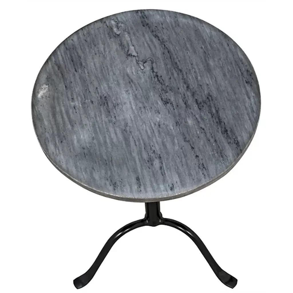 Give a clever café style in miniaturized form to your living space with the Cosmopolitan Side Table from Noir. Ascending from a smooth tripod of fine, industrial steel, it sends up a rounded single stem to a durable, disc-shaped tabletop in natural marble, transforming its surroundings with a clever contrast. The natural veining surface of the marble stands out well from the smooth metal below with no two tabletops alike.