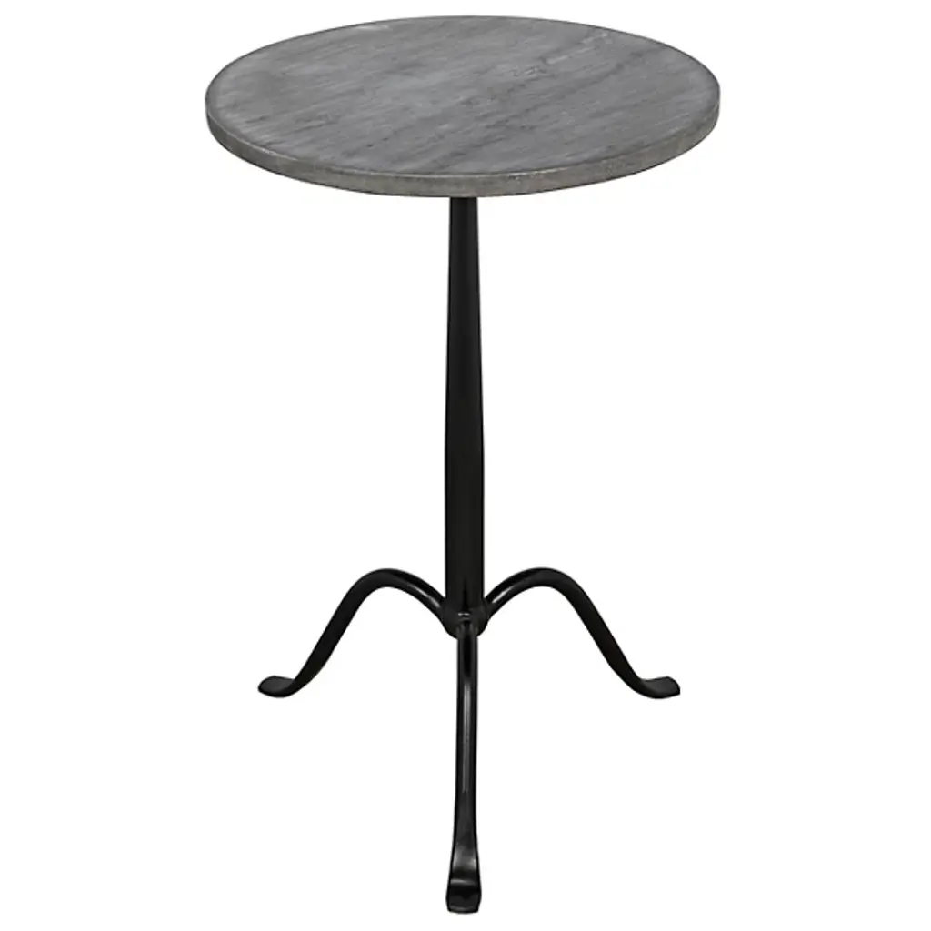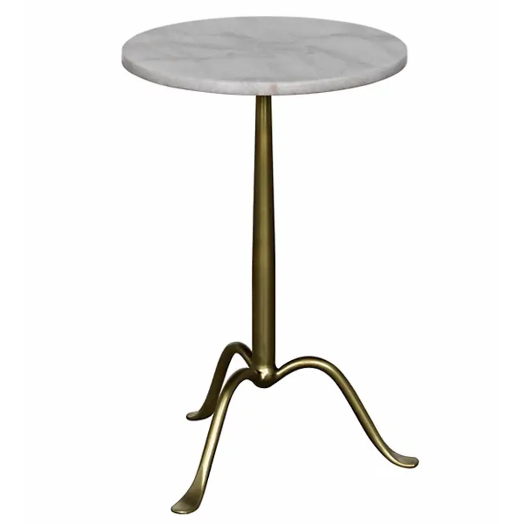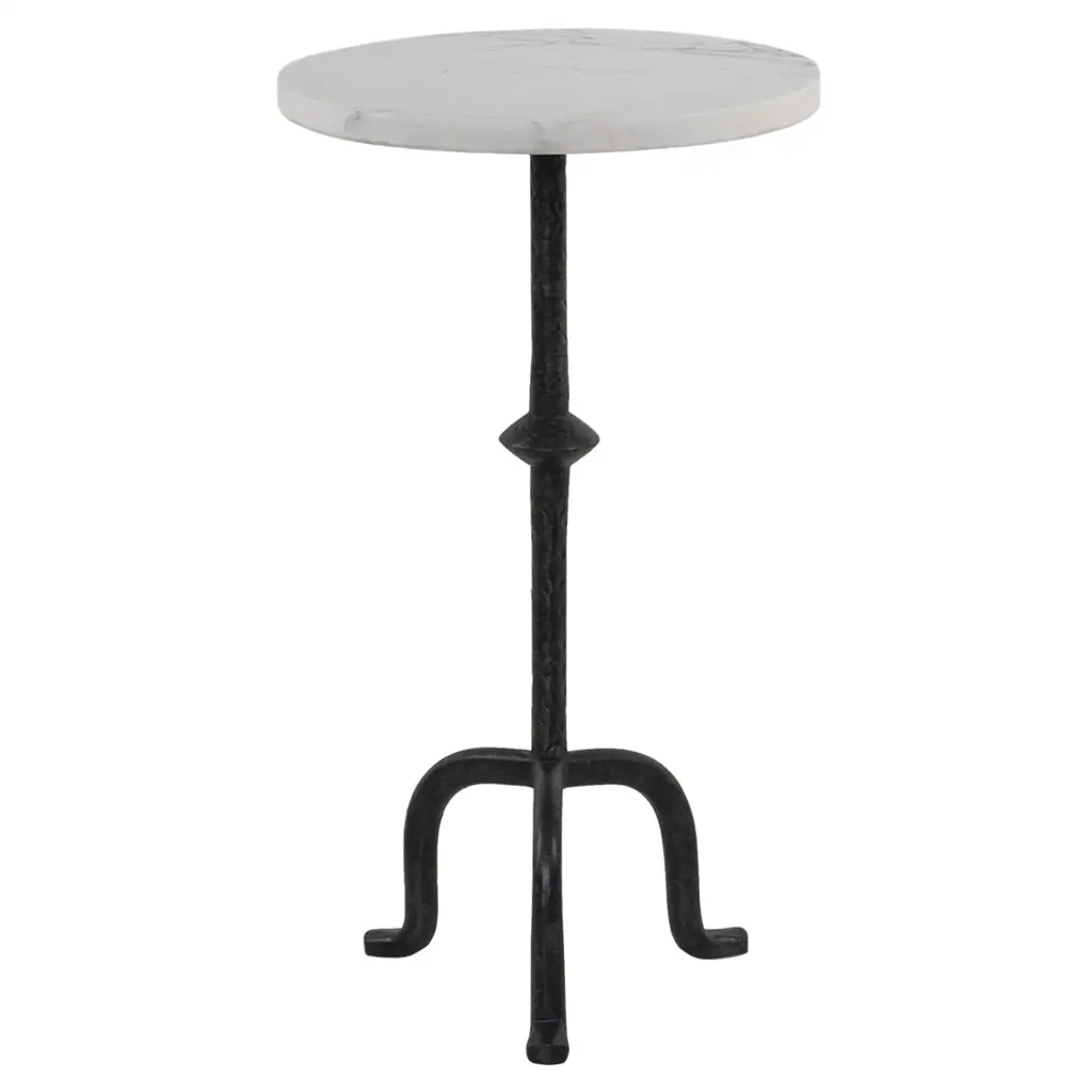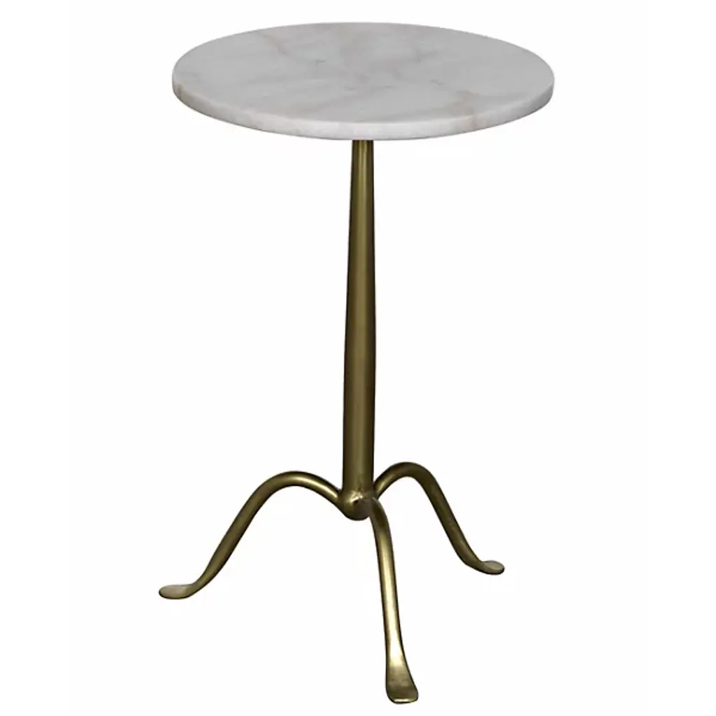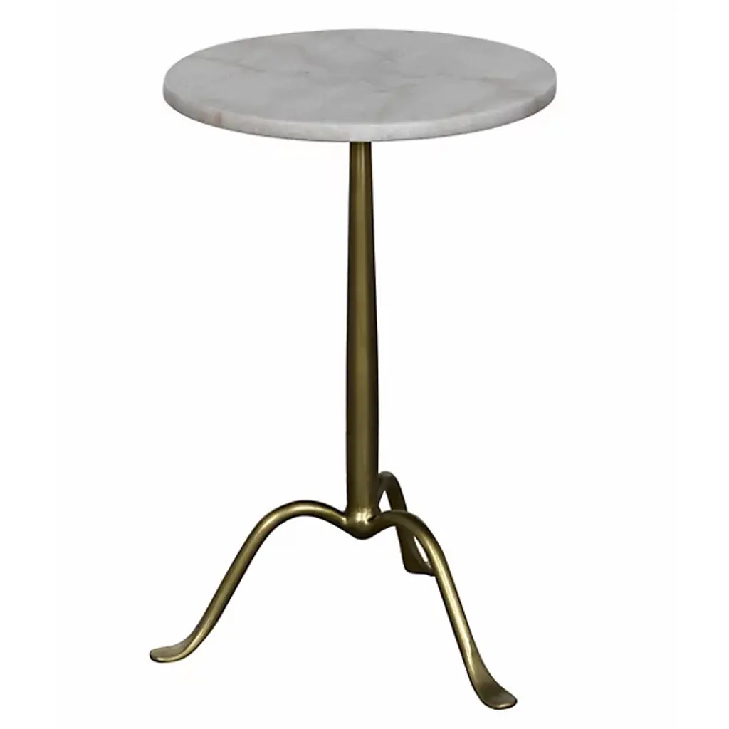 Give a clever café style in miniaturized form to your living space with the Cosmopolitan Side Table from Noir. Ascending from a smooth tripod of fine, industrial steel, it sends up a rounded single stem to a durable, disc-shaped tabletop in natural marble, transforming its surroundings with a clever contrast. The natural veining surface of the marble stands out well from the smooth metal below with no two tabletops alike.