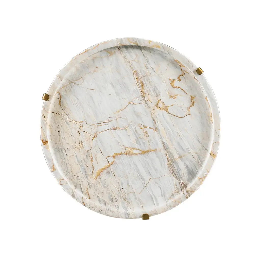 Handsome tri-pod spot table in a casual brushed gold finish with a dished solid Century marble top as well as the inset lower shelf. Ships In 4-5 Weeks Brushed Gold finish Century Marble top and shelf This image is for illustrative purposes only. The colors shown are accurate within the constraints of lighting, photography, and the color accuracy of your screen.