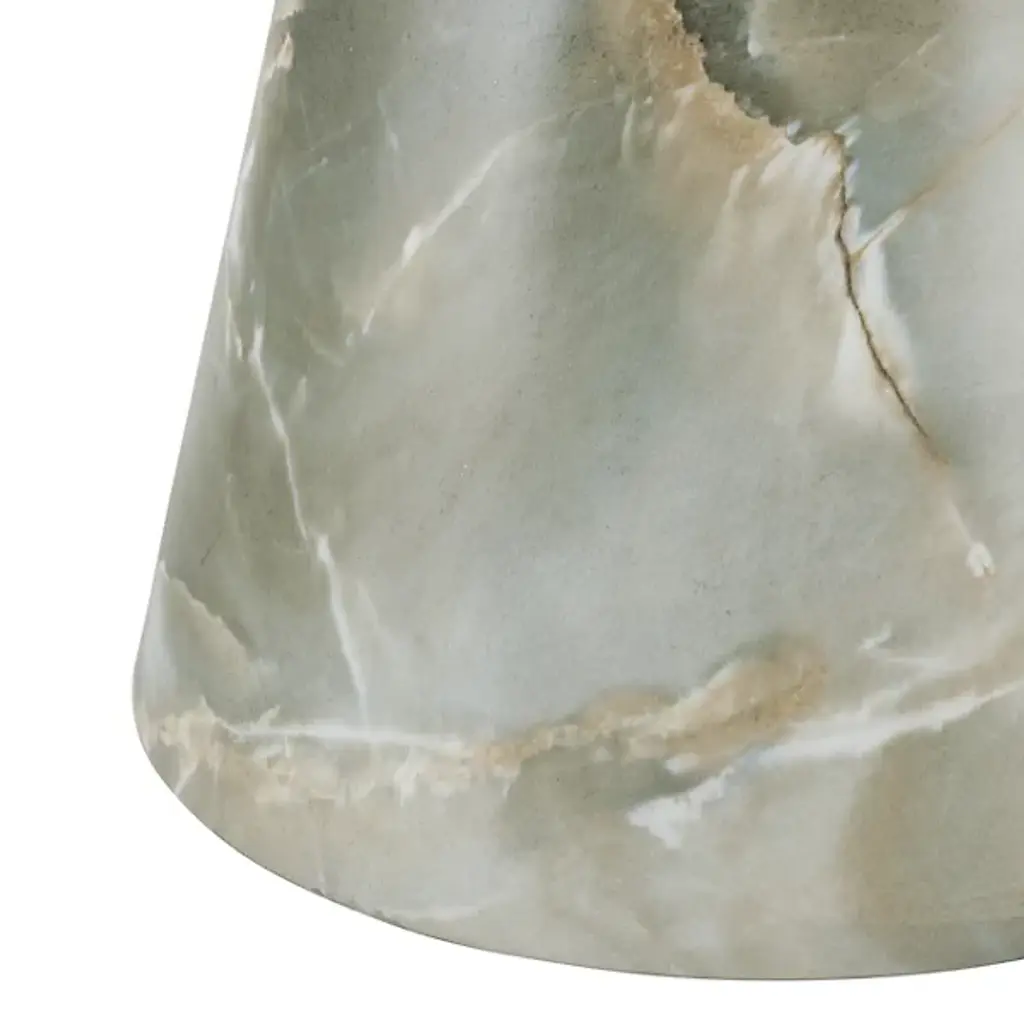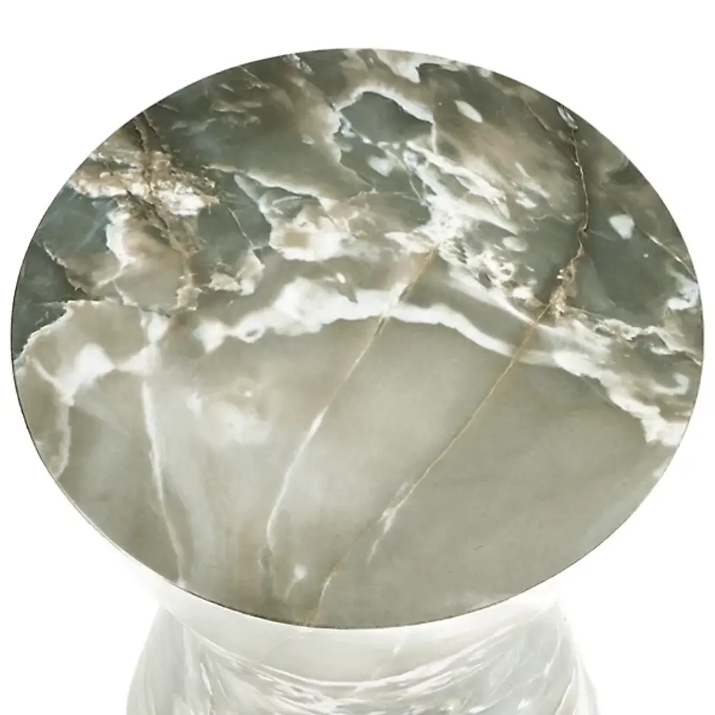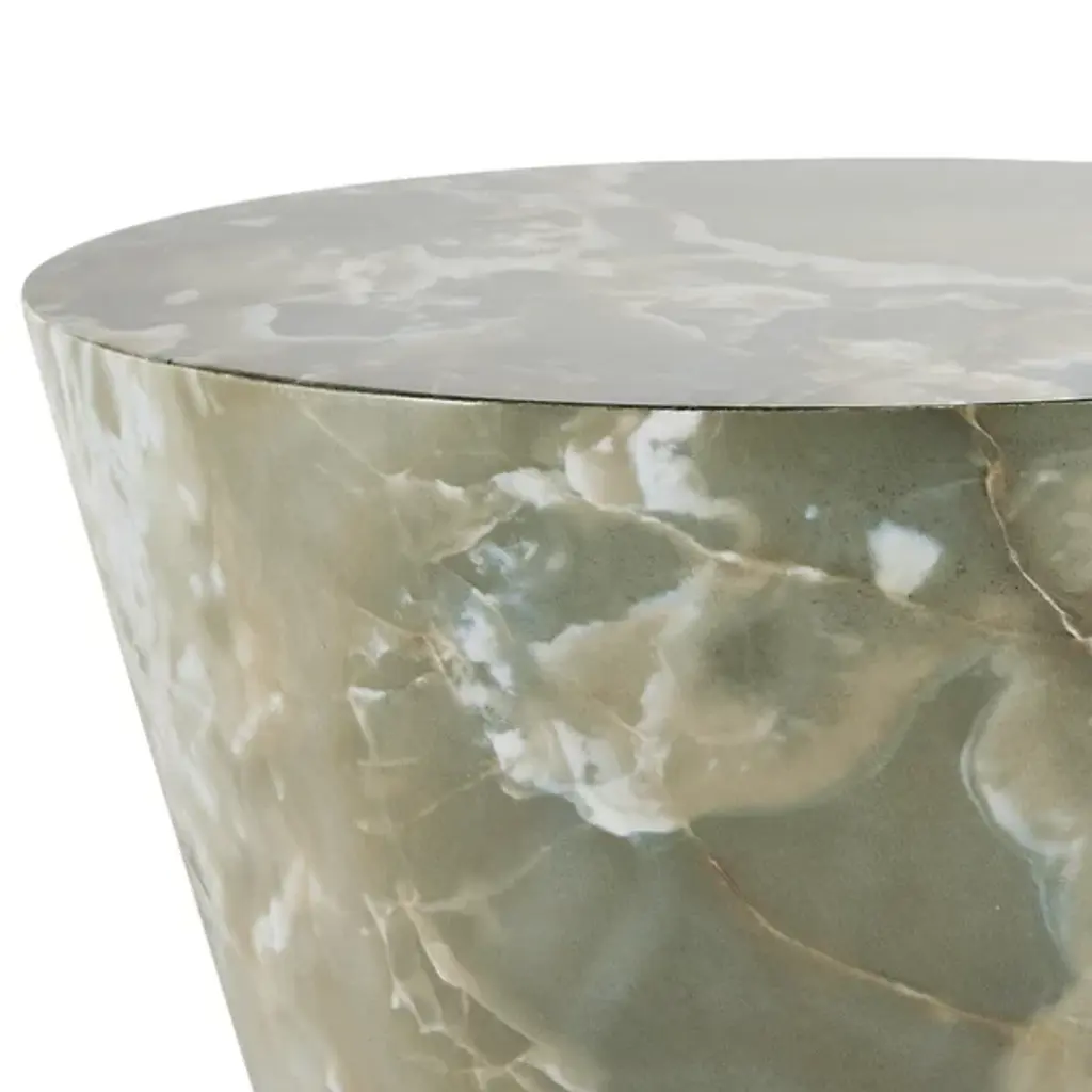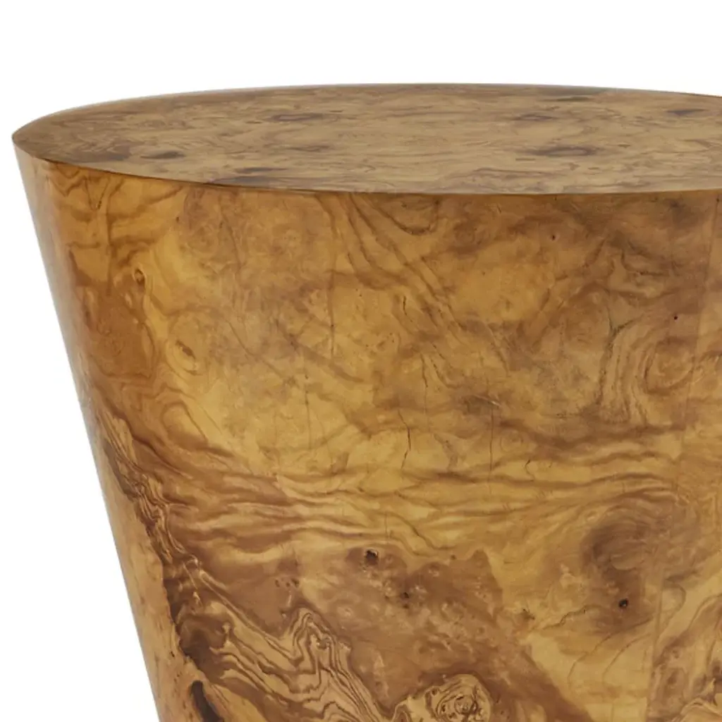 The Costello Accent Table from Arteriors combines rustic modern and mid-century modern styles with a simple shape in a 70s-inspired design. Each table is made in Vietnam and features an iconic tapered hourglass silhouette with a glam veneer finish, book-matched at the top and base for a mirrored effect. The table itself rests on nylon glides to keep surfaces pristine, and each piece is unique due to finish variations, adding elegance and individuality to any space.