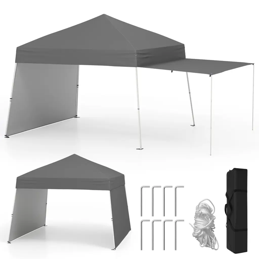 Costway 10 X 10ft Pop Up Canopy Tent With 1 Sidewall, Portable Backpack, 4 Stakes Slant Leg Gray