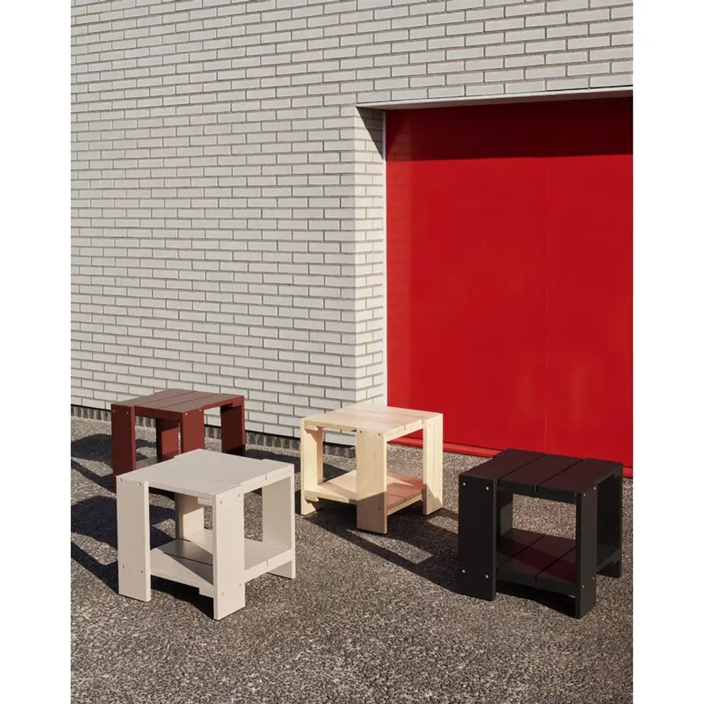 The Crate side table is part of HAY’s collection of wooden outdoor furniture. The rectangular Crate table is characterized by its clean and balanced lines, which give the table an architectural and sturdy look. The side table matches perfectly with HAY's pine Crate chairs, but also steals the show as a companion to other patio furniture – or even on its own! The Crate side table is based on the table designed by Dutch architect and designer Gerrit Thomas Rietveld in 1934. At that time, the table was made from leftover wooden shipping crates, but the Rietveld Originals and HAY reinterpretation uses lacquered pine as the material. Finished with a weatherproof coating, the Crate side table is ideal for outdoor spaces from the terrace to the garden and balcony.