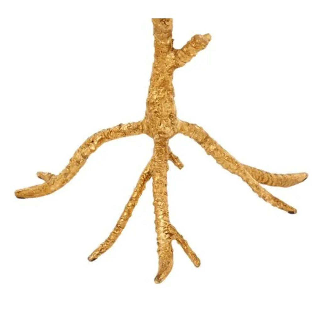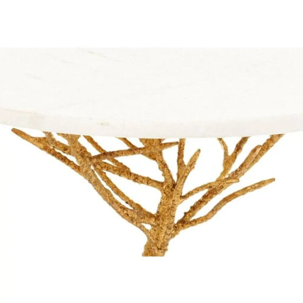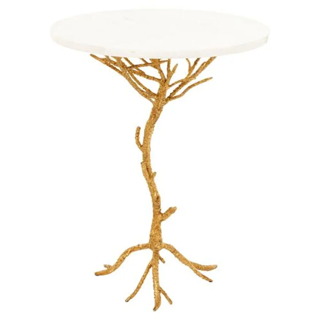 Elegantly crafted with nature in mind, this accent table is sure to bring a woodland touch to any decor. Built soundly from iron, brass, and granite, it features a chic white top and glistening gold base, which offers a lovely contrast within the piece.