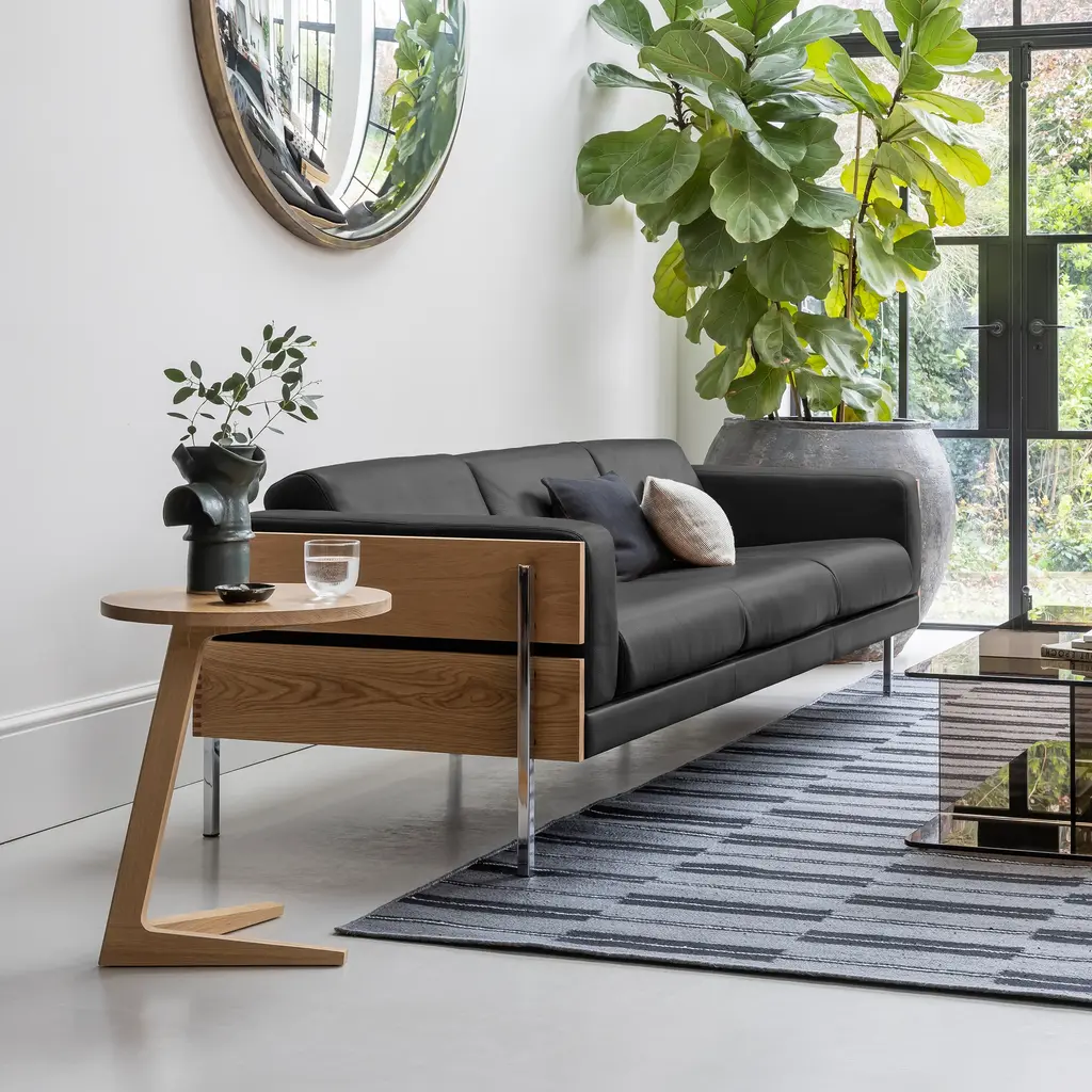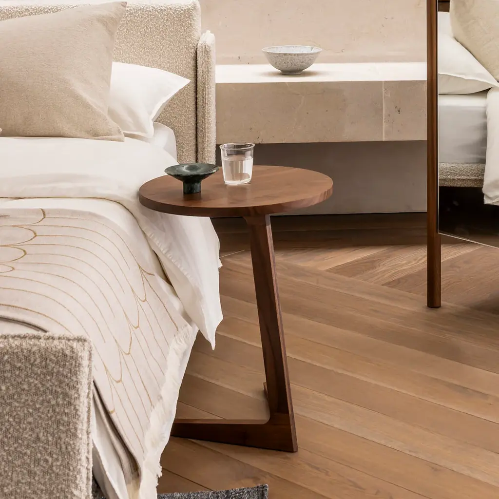 With his usual functional elegance, Matthew Hilton designs a solid-wood side table with an angled structure that has a compact footprint, making it ideal for small spaces. Crafted from solid wood in either oak or walnut finishes, Cross features a base with a chamfered edge detail and is finished with a clear lacquer which allows the natural warmth of the wood to come through, requiring minimal maintenance.