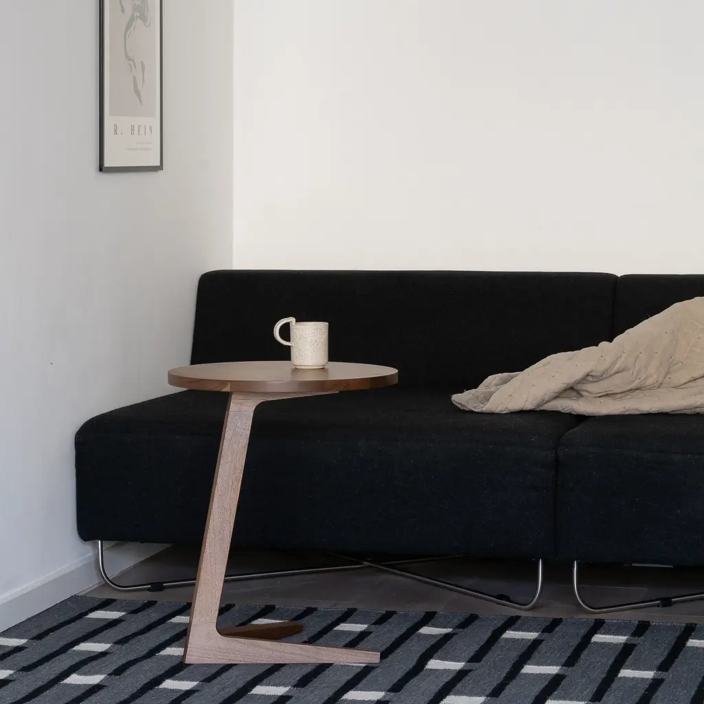 With his usual functional elegance, Matthew Hilton designs a solid-wood side table with an angled structure that has a compact footprint, making it ideal for small spaces. Crafted from solid wood in either oak or walnut finishes, Cross features a base with a chamfered edge detail and is finished with a clear lacquer which allows the natural warmth of the wood to come through, requiring minimal maintenance.