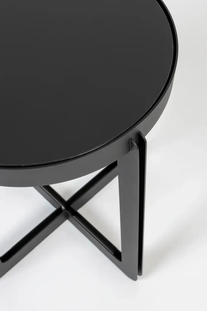 Introducing the elegant Crossed-Base Side Table by Zuiver Centre. Designed by Bas Vellekoop, it features a double-crossed base and a seamless lacquered tabletop on a matte metal frame. With our logo subtly displayed on the base, choose between timeless black or a refreshing beige. Elevate your space with this sophisticated piece.