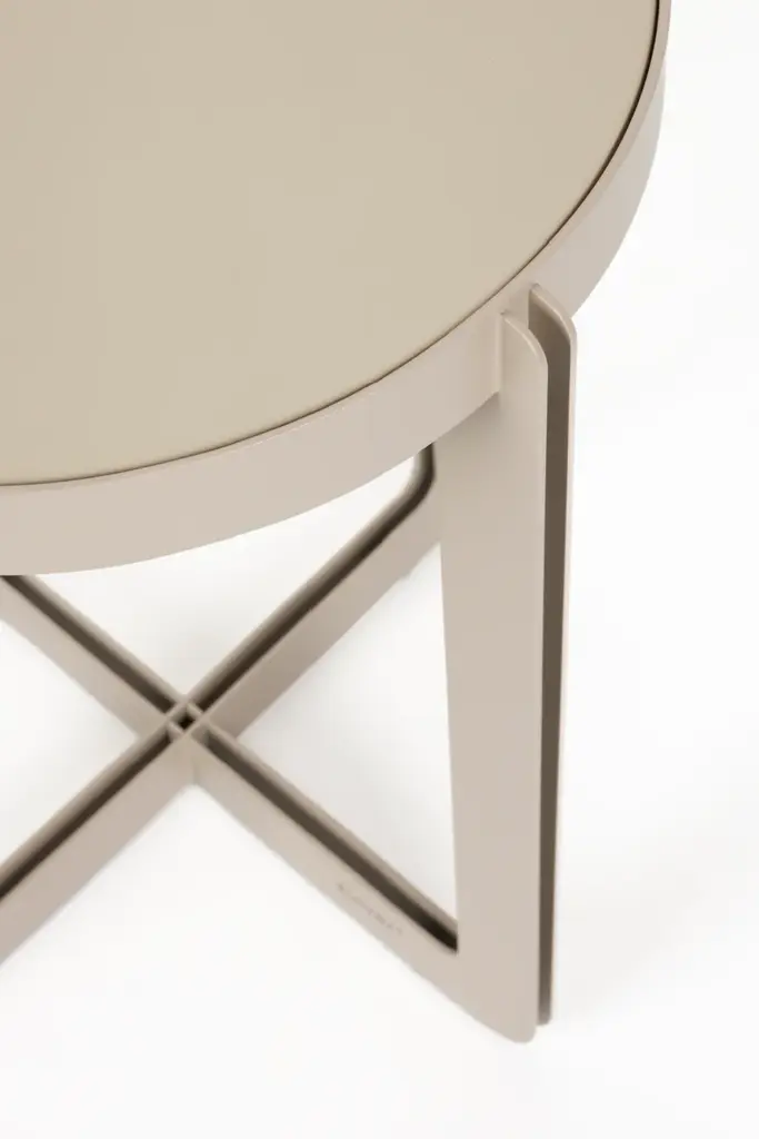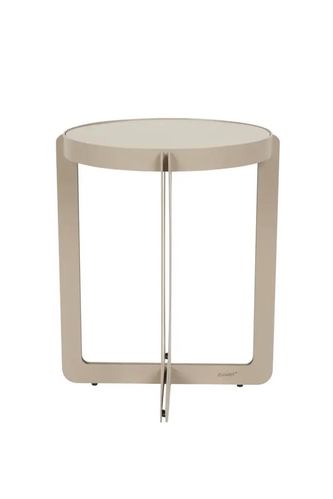 Introducing the elegant Crossed-Base Side Table by Zuiver Centre. Designed by Bas Vellekoop, it features a double-crossed base and a seamless lacquered tabletop on a matte metal frame. With our logo subtly displayed on the base, choose between timeless black or a refreshing beige. Elevate your space with this sophisticated piece.