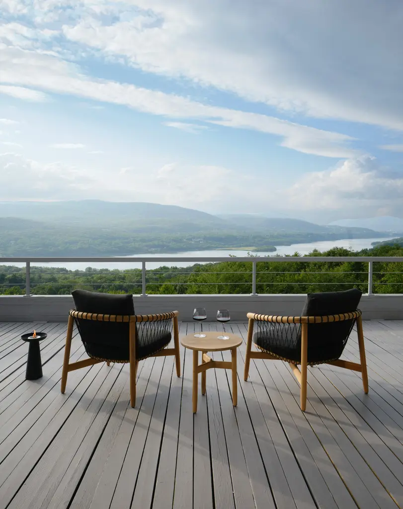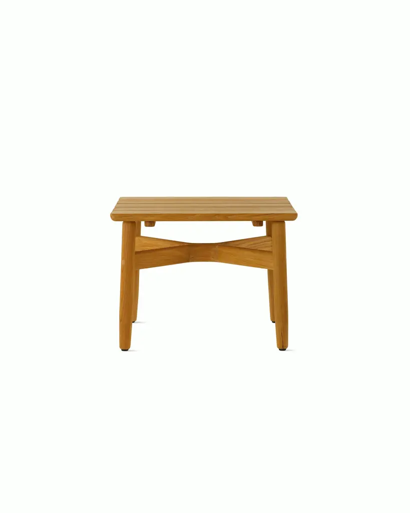 Beautifully made with a solid teak frame, the Crosshatch Outdoor Side Table (2017) provides understated style. Pair it with the Crosshatch Settee or Lounge Chair, as a single piece or in multiples: With its sturdy construction and classic good looks, it is at home everywhere from boutique hotel roof decks to suburban patios.