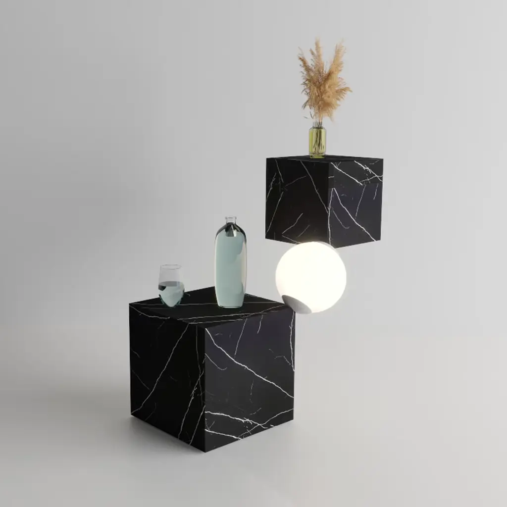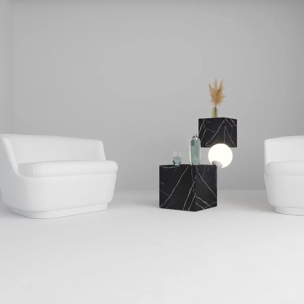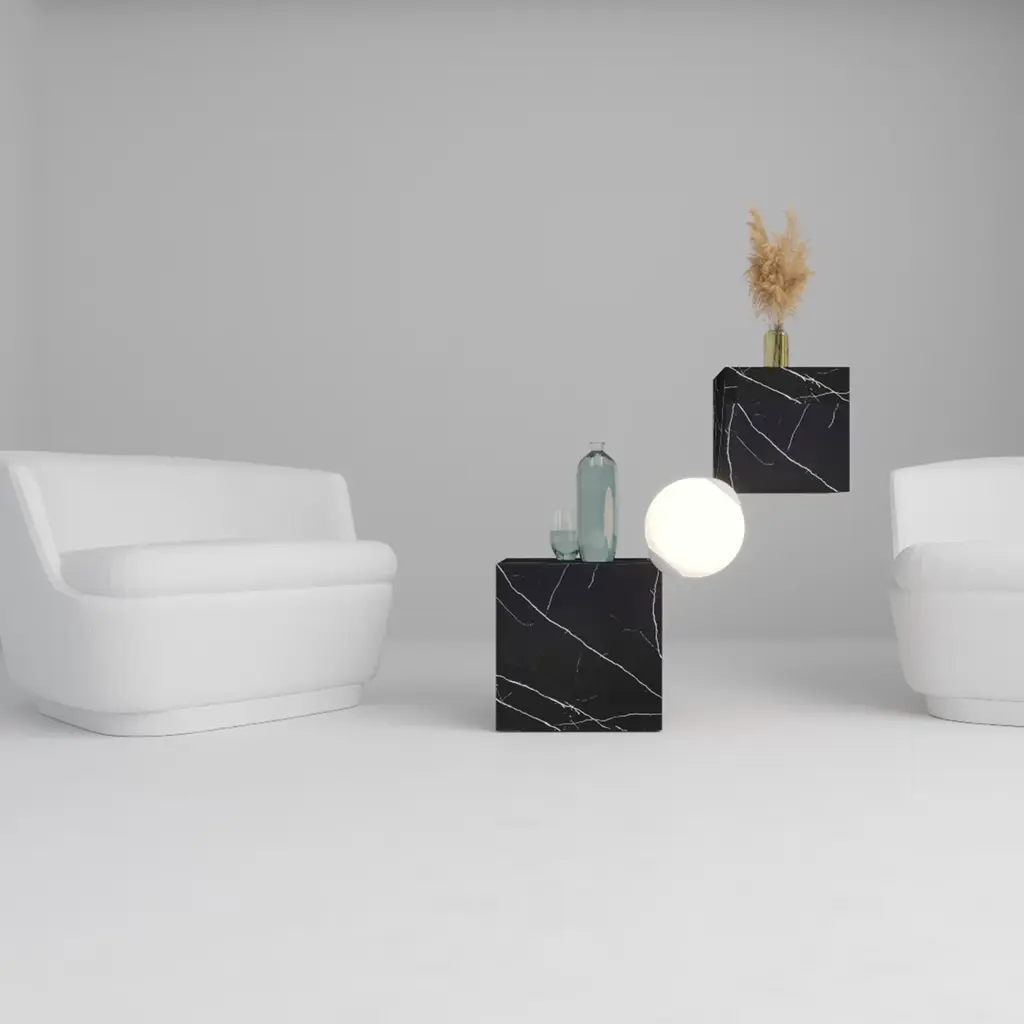 The CSD lamp and side table Marble cube floating in space questioning any law of physics. The coffee table and floor lamp, respond charmingly and luxuriously to the functions for which it was designed.
