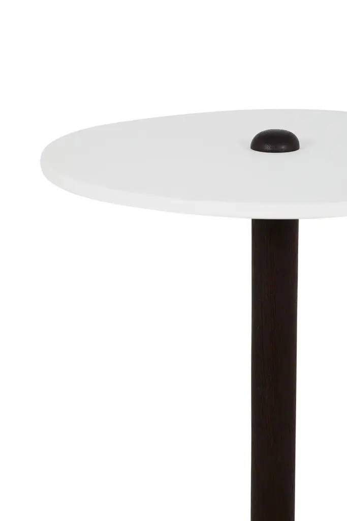 This simple and elegant design is composed of a hand-turned upright piece of wood that is cast into a concrete base. Shown in wenge, the concrete base is either a clean cube or a rougher "cracked" cast. The wood element protrudes through a surface of corian.