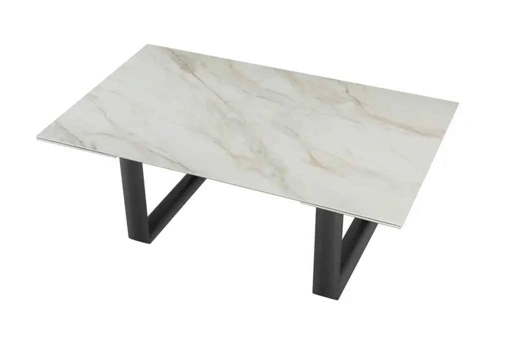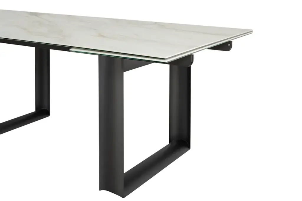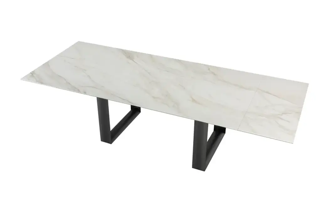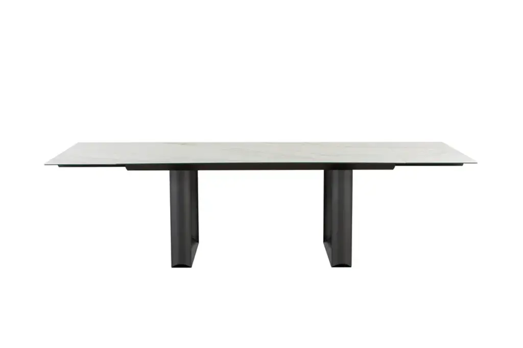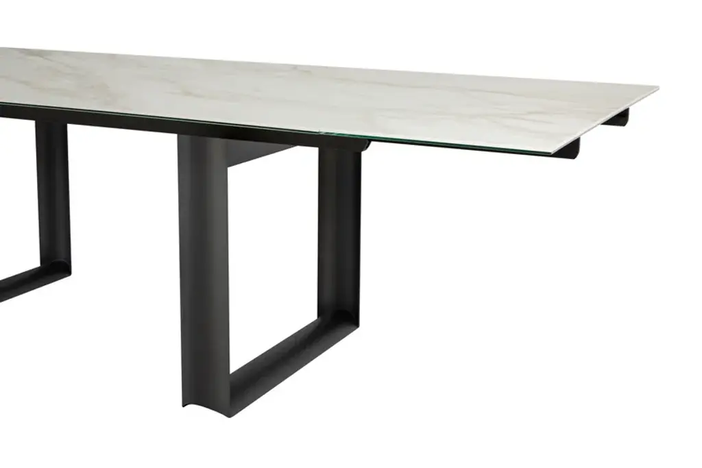 Cube is an extendable rectangular table in porcelain stoneware in different finishes and base in charcoal gray metal.Fixed or extendable, Cube is a dining table with a strong aesthetic. The particular shape of the bases makes the table refined, suitable to every project or setting, thanks also to the many finishes.