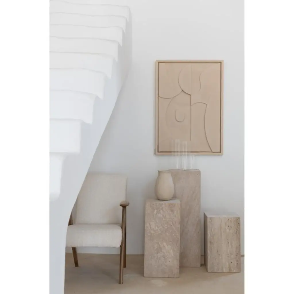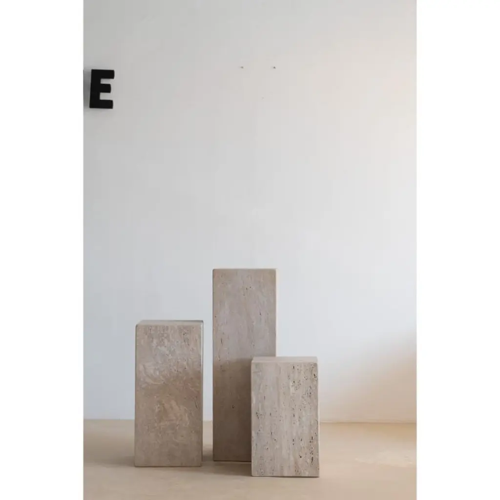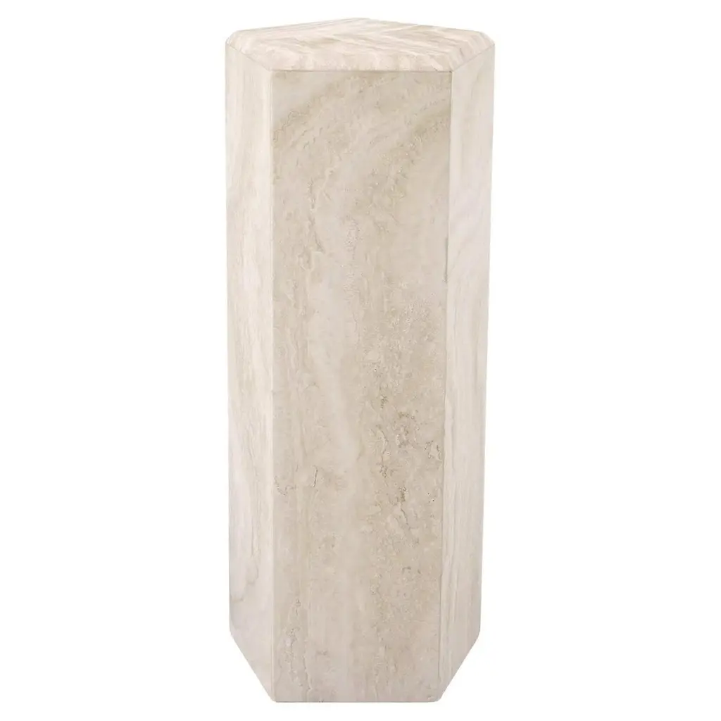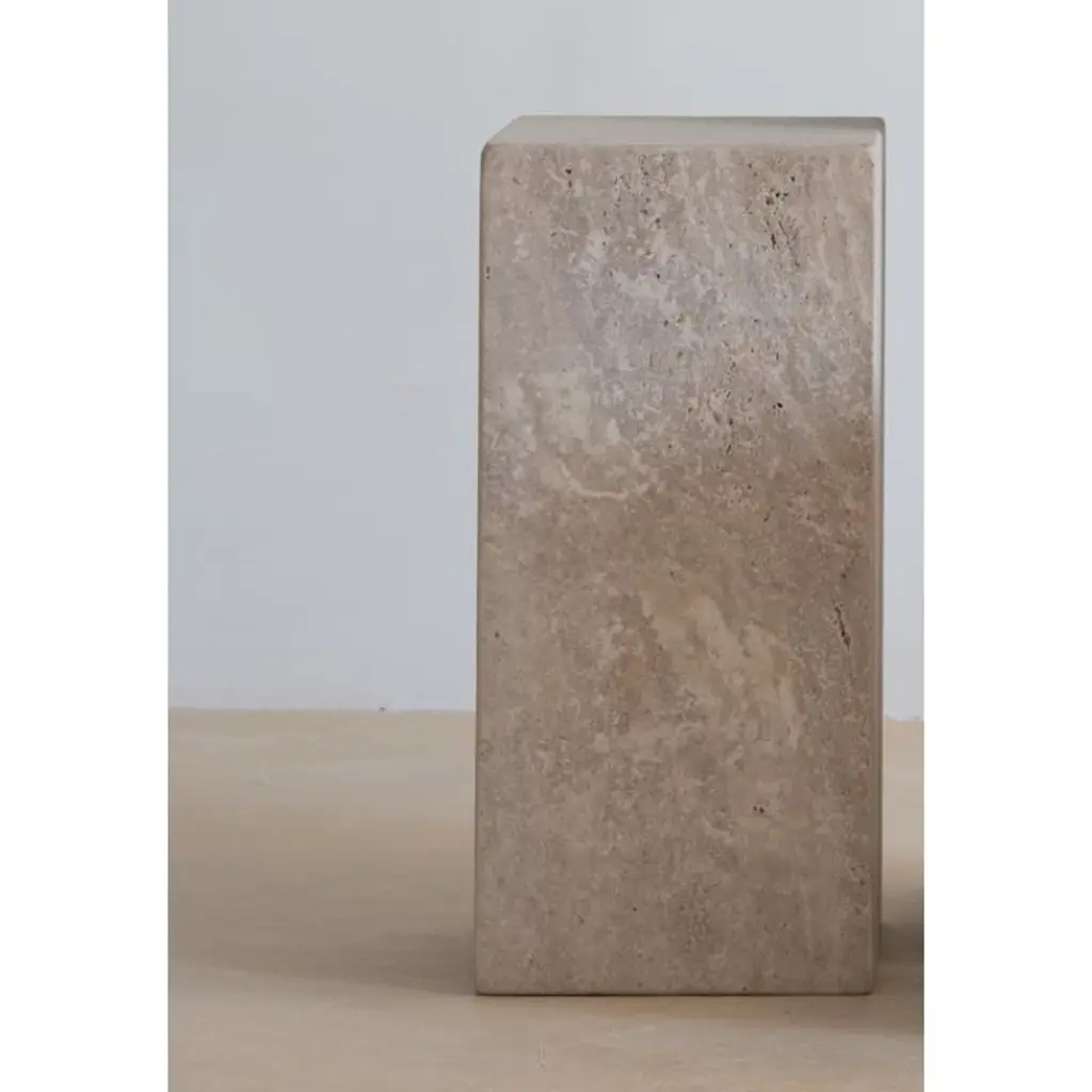 Cubes Herra Square Handcrafted Travertine Decorative Side Table by Beije AvenueDimensions: Ø 30 x H 100 cm. Materials: Travertine.Available in different size options. Please contact us.They are multifunctional, sofa end table, bedside table or even side table, our columns of different heights will meet all your needs.Designed in travertine, these organic ones will bring a touch of exception to your room.A highly prized rock during Antiquity, Travertine displays its unique roughness to transcend the most charismatic designer pieces.It has unique characteristics that allow it to stand the test of time without losing its value. Raw yet sensual, mineral without being cold, vibrant and textured, Travertine floods interiors in search of a sophisticated natural look. Travertine stone held a prominent place in the era of ancient Rome. Indeed, it was used in the construction of famous buildings such as the Colosseum and the Theatre of Marcellus.At Beije Avenue, we work with a porous natural travertine, lighter than marble or granite. Its specificity: it is made up of small, unevenly distributed cavities which give it character and an authentic cachet. Travertine can take on various shades of color, depending on the area where it is extracted. We can therefore observe a panel which varies from very light beige to ivory, which allows us to give a noble and sophisticated look.