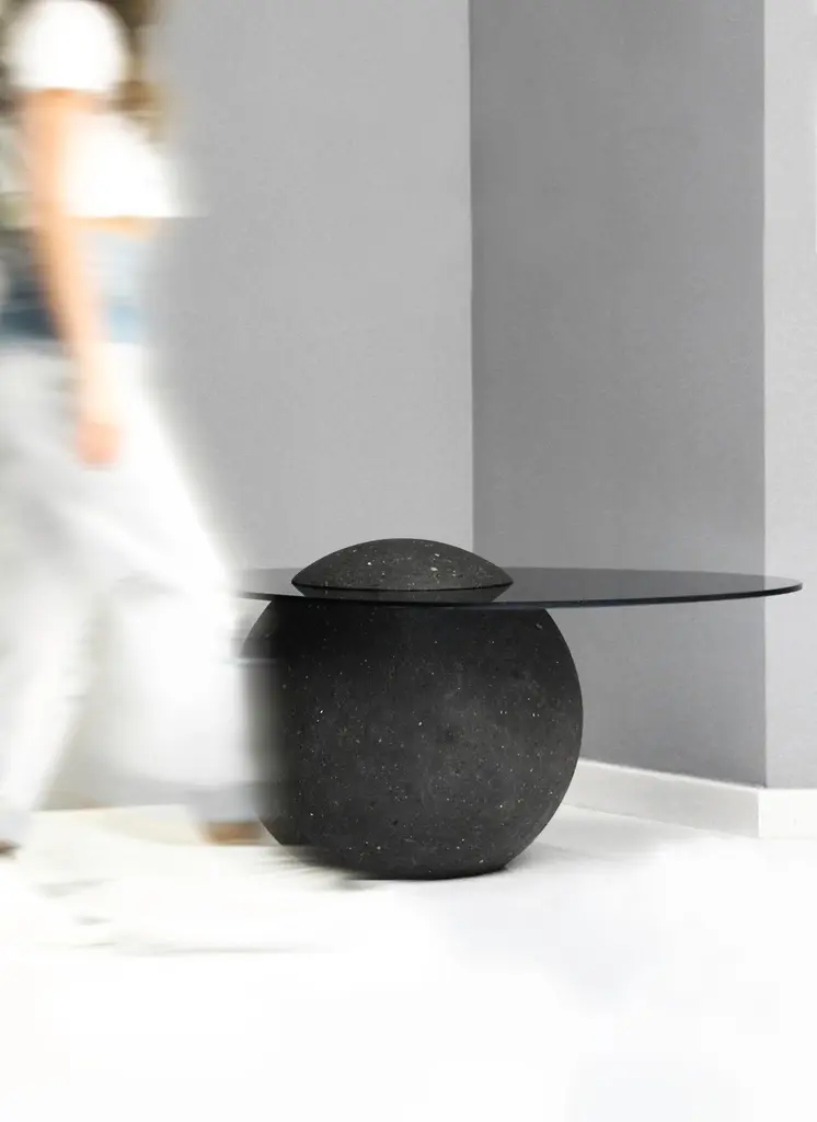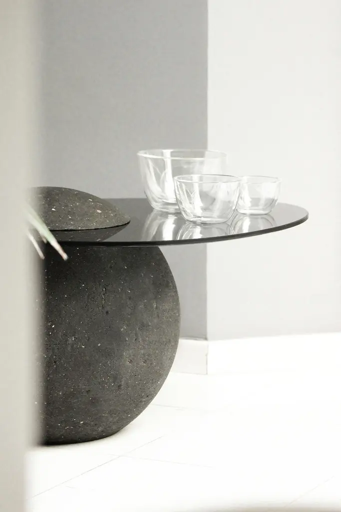 Cuitzeo Side Table by Drusch DesignDimensions: W 90 x D 60 x H 54 cmMaterials: Cantera stone with a natural matte finish, 9mm smoked tempered glass.Weight: 175 kg. The Cuitzeo side table seamlessly blends Cantera stone and tempered glass in a design that highlights the beauty of natural materials. Hand carved by artisans in Huichapan, Hidalgo, this piece draws inspiration from the image of a frog peeking out of a lake, capturing nature's essence through simplified forms. The dark gray volcanic Cantera stone, a historically significant material in Mexico, features a natural matte finish that adds a timeless quality, while the 9mm smoked black tempered glass offers a modern touch. This side table, produced in 2021, exemplifies the mastery of ancient craftsmanship and the possibilities of contemporary design, making it a refined and sophisticated addition to any space. About: As an industrial designer based in Mexico City, they specialize in artistic direction. Their professional journey is marked by a disciplined and creative approach, managing the entire creative process from conceptualization to development and promotion. They focus on creating expressive objects that evoke emotions and connect deeply with the audience. Each piece they design tells a different story, serves a unique purpose, and originates from a distinct concept, highlighting their passion for translating ideas into tangible forms. In 2017, they founded Drusch Design, a design studio in the heart of Mexico City. Driven by their fascination with natural materials and their unique behaviors, they explore how stone, wood, metal, and glass can be transformed into distinctive, handmade pieces that serve both practical purposes and as artistic expressions. Drusch Design embodies a futuristic, modern, and minimalistic aesthetic, with each piece telling a different story and serving a unique purpose. Their passion for artistic direction is the driving force behind the unique concepts developed at Drusch Design. They are dedicated to using the finest materials, techniques, and processes to create original, high-quality products. Their goal is to bring harmony and functionality to home spaces through design. Each piece reflects their vision and passion, making it a unique and meaningful addition to any environment.All our lamps can be wired according to each country. If sold to the USA it will be wired for the USA for instance.