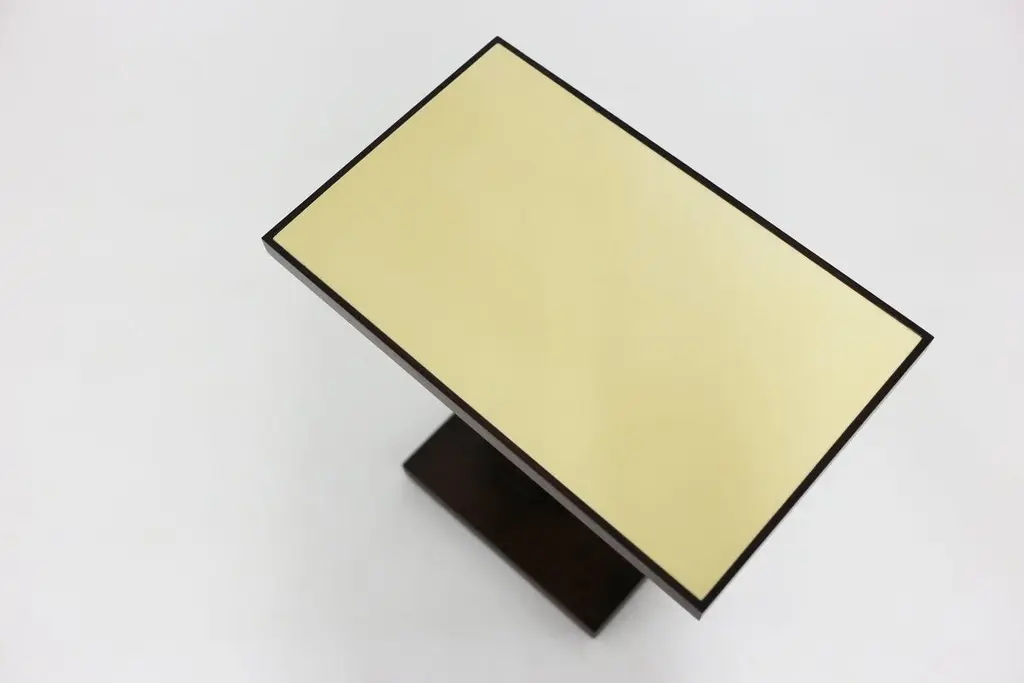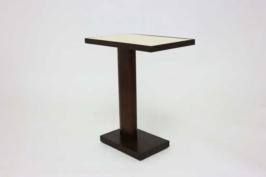 Custom Side Table In Mahogany With Upholstered And Lacquered Top
