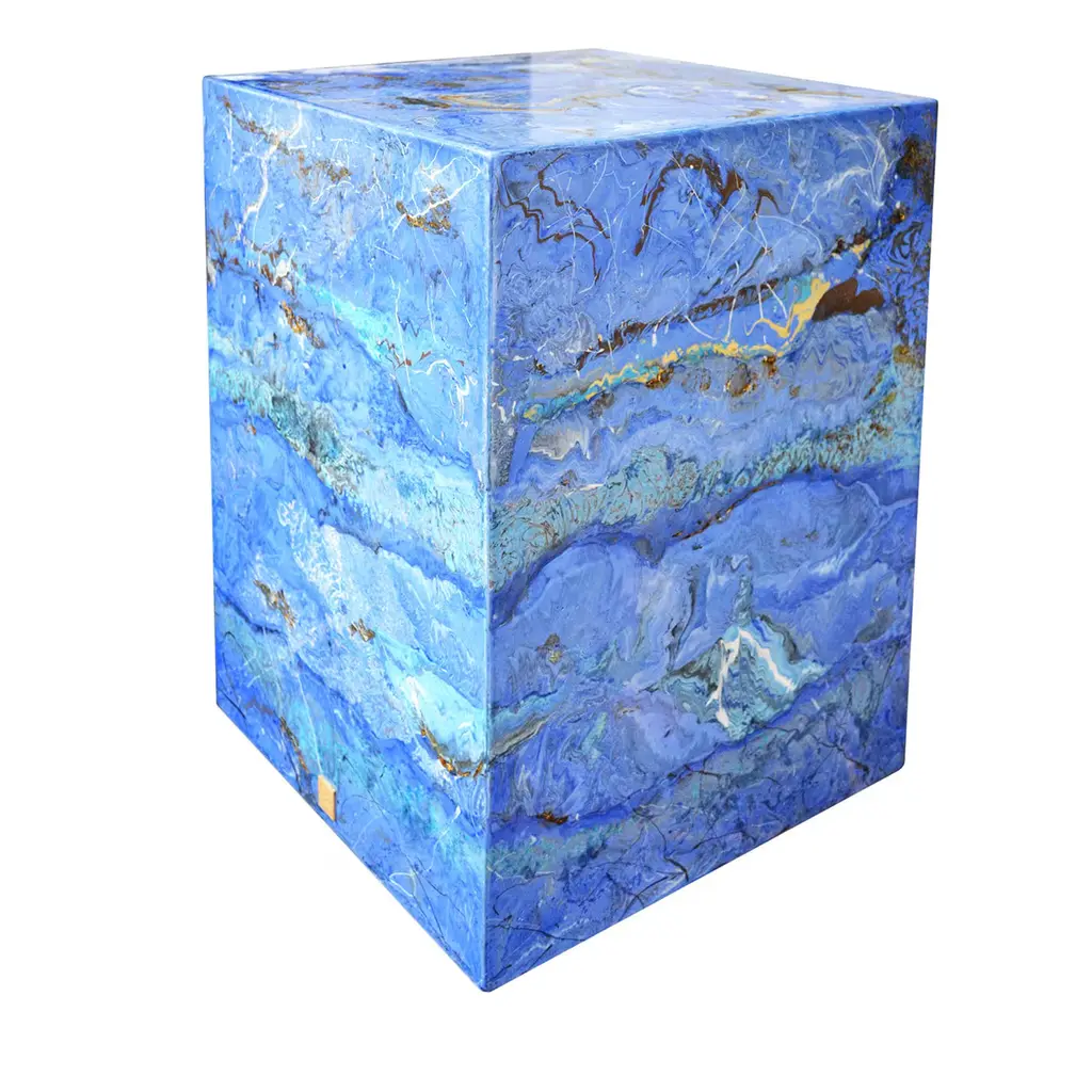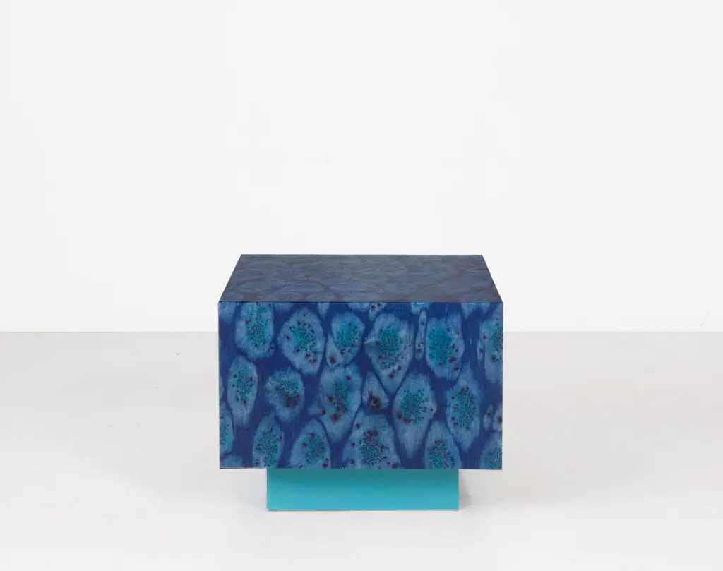 Customizable Two-Toned Blue Cube Side Table By Llot Llov
