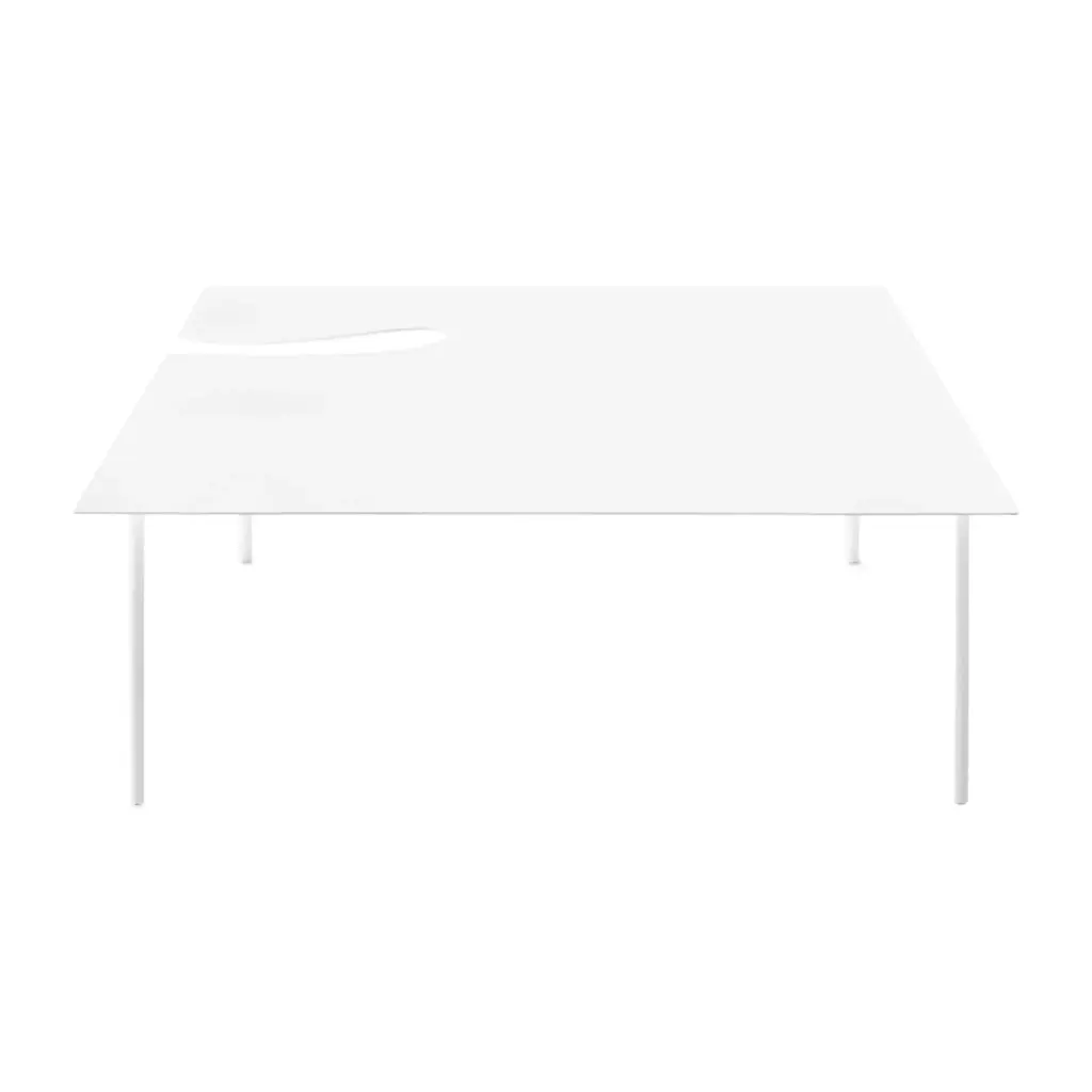 Elevate your space with the Desalto Softer than Steel Cut-Out Metal Side Table. Designed by Nendo, this range offers ultralight carved tops, floating on slender steel legs, for an ethereal and playful design. The sinuous cutting adds aesthetic beauty and allows for versatile compositions, while the smooth surface reflects light for a gentle dance of shadows and highlights.