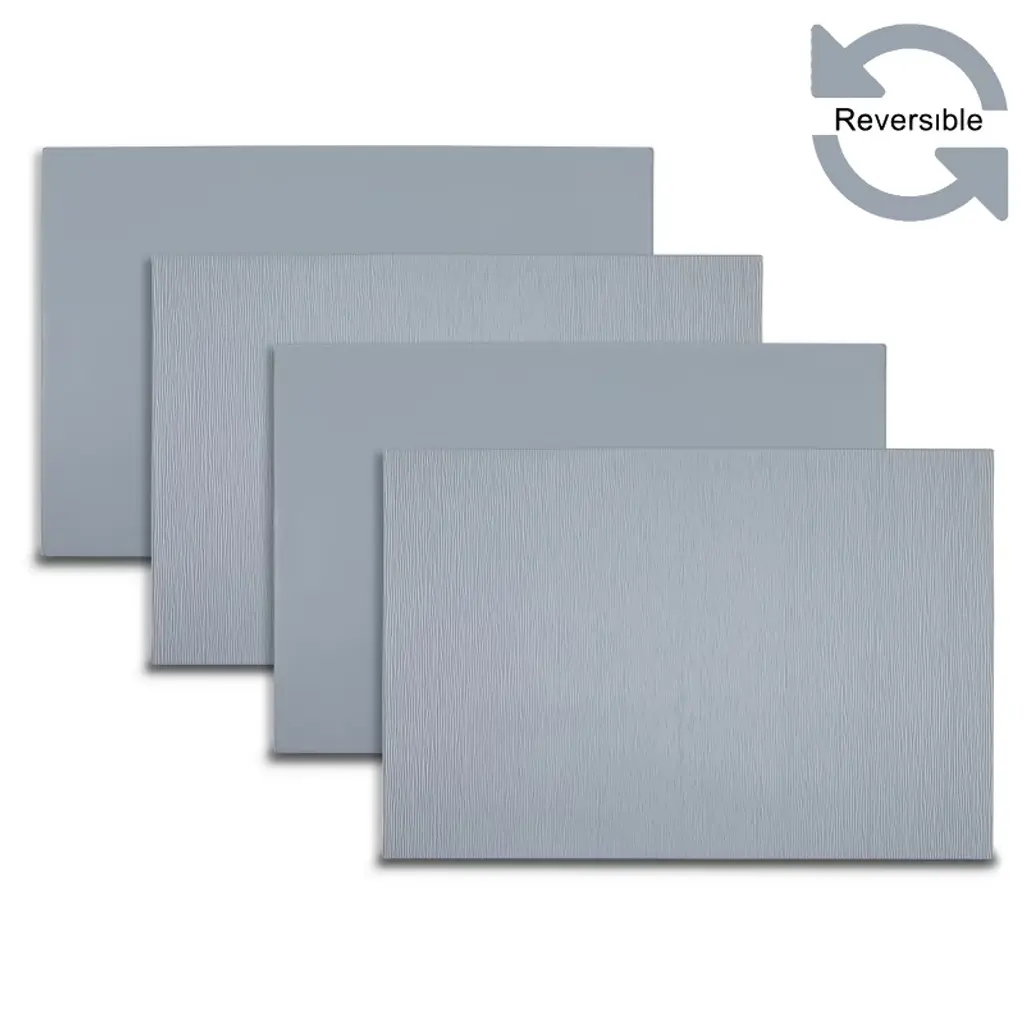 Add style to your dinner party with these reversible premium vegan leather-textured placemats. Dress up your dining, kitchen, or outside table with premium vegan leather placemats. Reversible with premium vegan leather on both sides, they are perfect for everyday use or special occasions, protecting your table and defining dining areas for guests. Available in various shapes, they suit any dining experience. These sturdy placemats enhance the experience and create space for your dinnerware, silverware, and napkins. Use different colors and styles for different occasions. Ideal for dinner parties, birthdays, restaurants, or hotels, they offer two styles in one. Easy to store, they take up minimal space. The premium vegan leather design adds a stylish touch. These placemats resist scratching, tearing, stains, slipping, fading, and daily wear. Suitable for indoor and outdoor use, they are easy to clean: just wash with soap and water and towel dry.