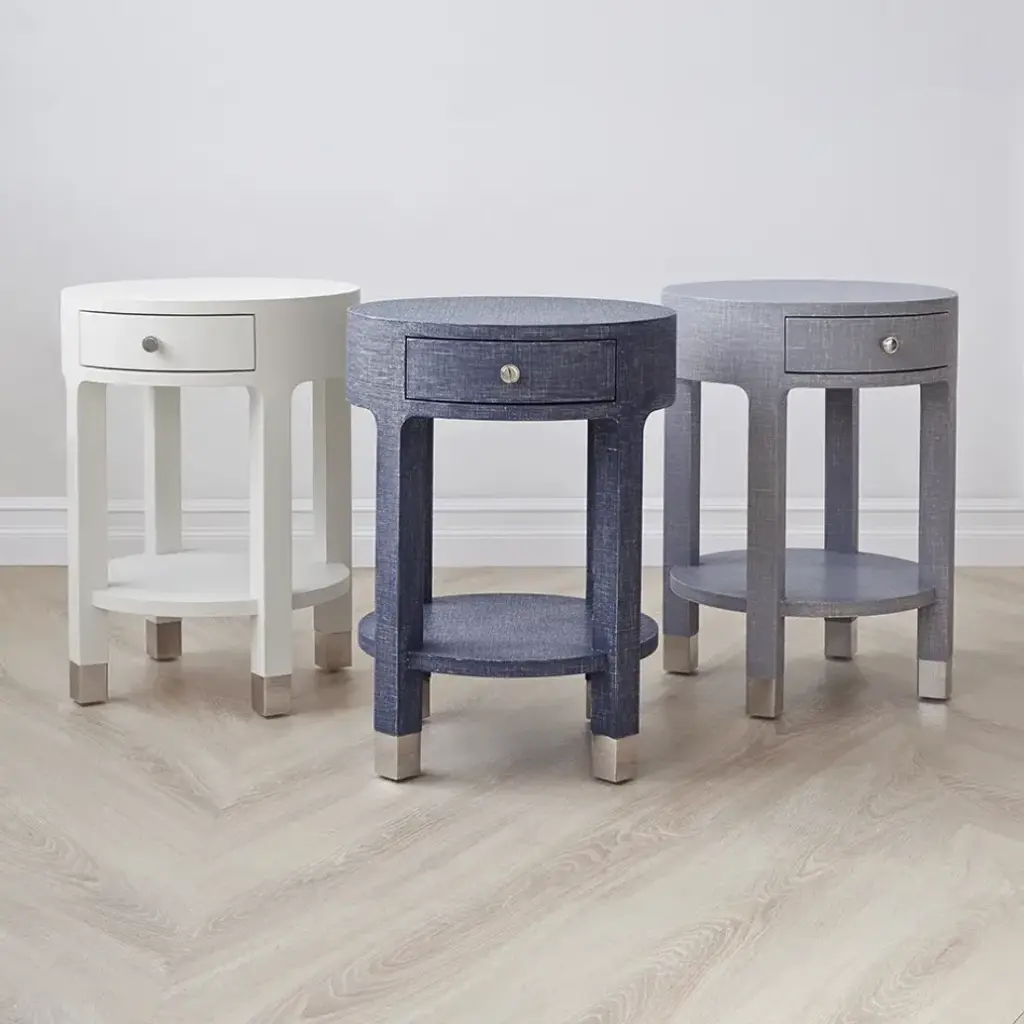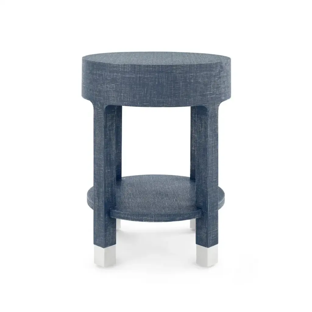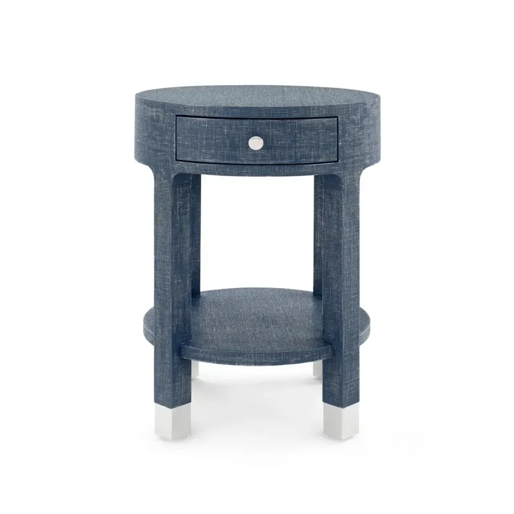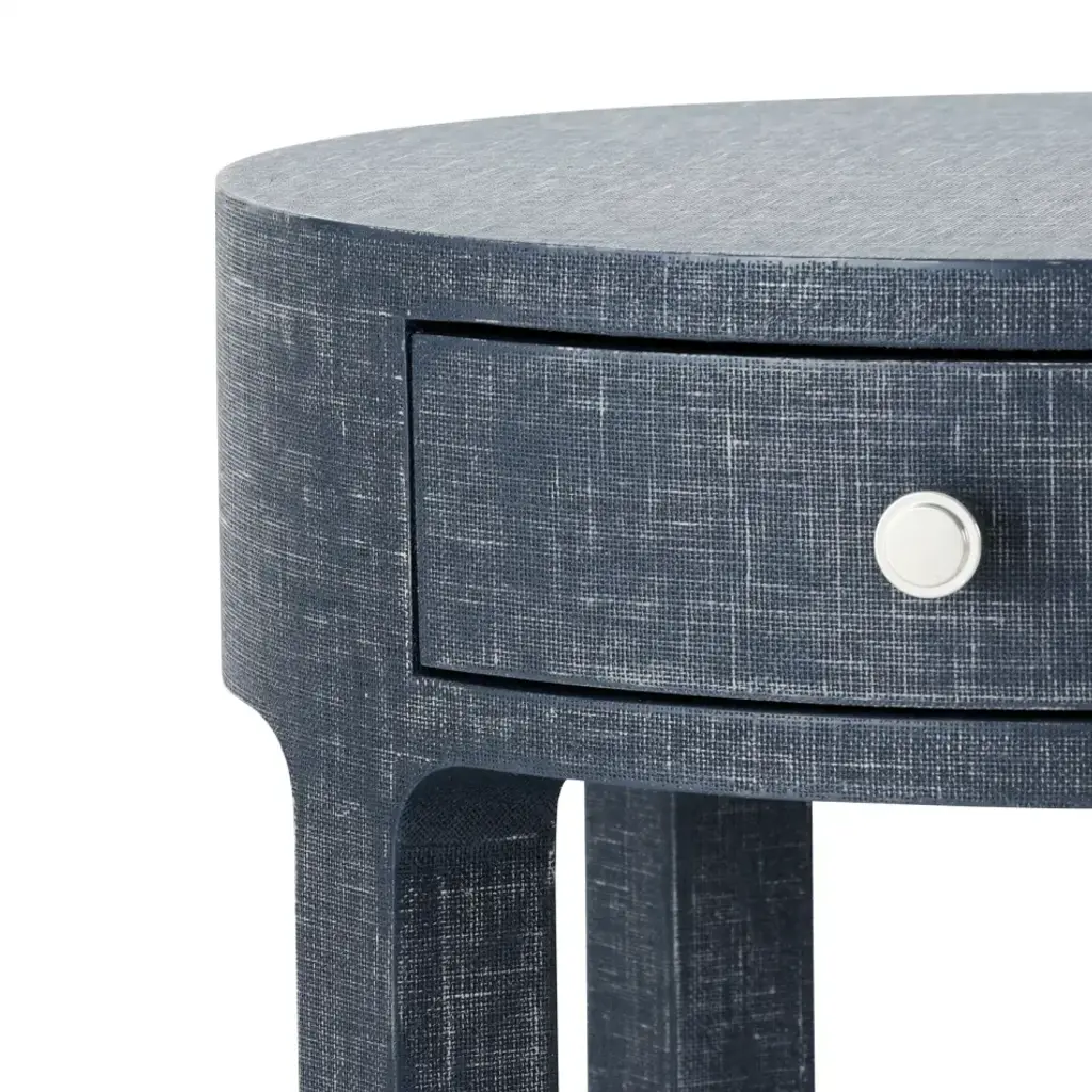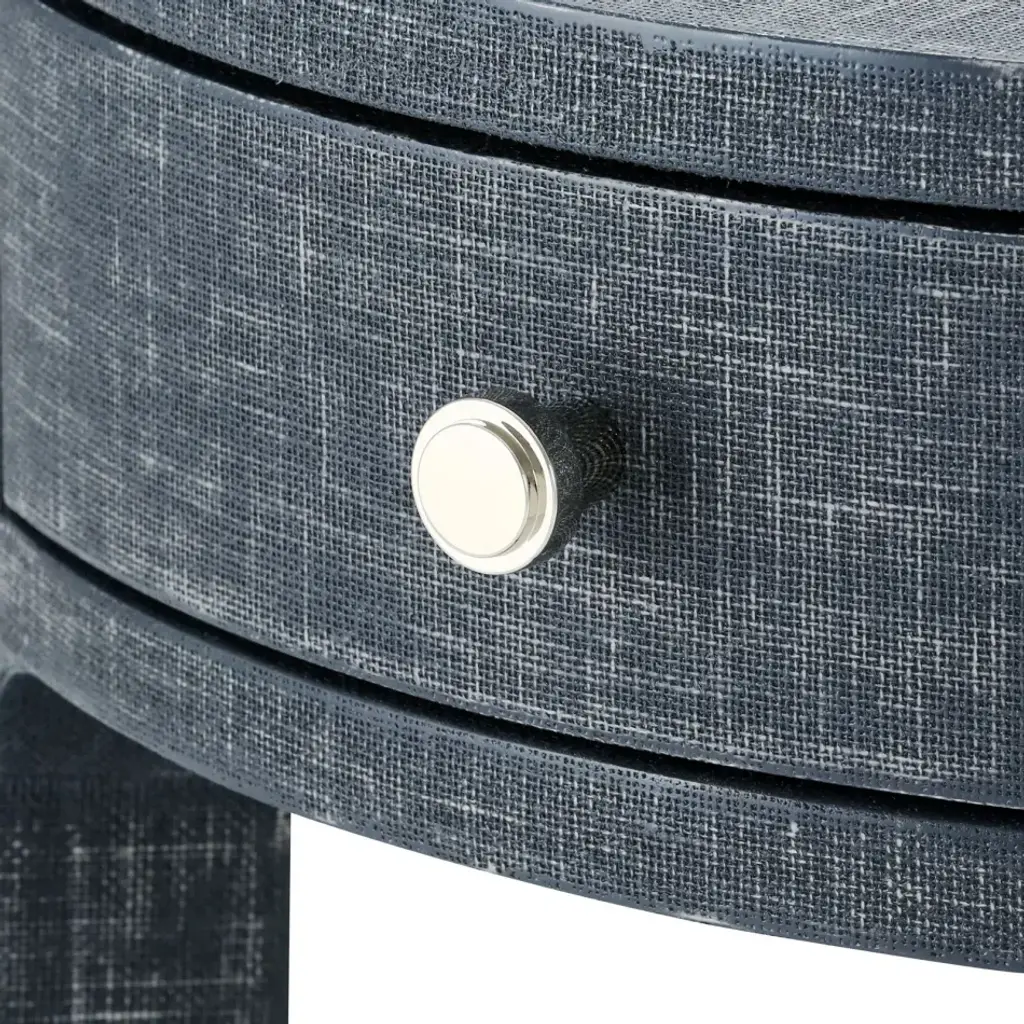 Dakota 1-Drawer Round Side Table Washed Blue Steel