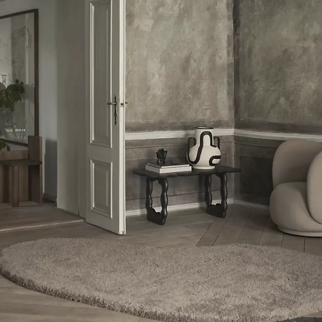 The Dal Accent Table from Ferm Living is designed in collaboration with Anna Maria Øfstedal Eng. It is composed of recycled casted aluminum for strength and sustainability. This contemporary piece is nature-inspired, taking design cues from the Gudbrandsdalen mountainside in Norway. The design is meant to illustrate the way that water erodes rock with its subtle trickle, bringing a touch of whimsy to your décor. This meticulously crafted piece is an artistic and functional addition to your space.