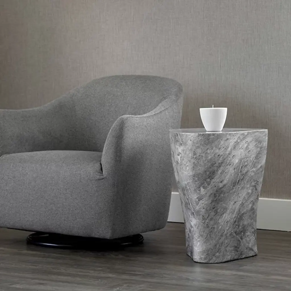 The Dali Side Table from Sunpan brings sculptural appeal to outdoor and indoor living spaces. This contemporary piece features a soothing upward-flaring design with soft, organic curves and offers ample surface space for your favorite accessories while providing a relaxing presence. Its durable construction ensures lasting appeal, while natural variations in tone and texture make each table uniquely yours. Perfect for adding an artistic allure, this versatile design enhances but does not dominate its surroundings.