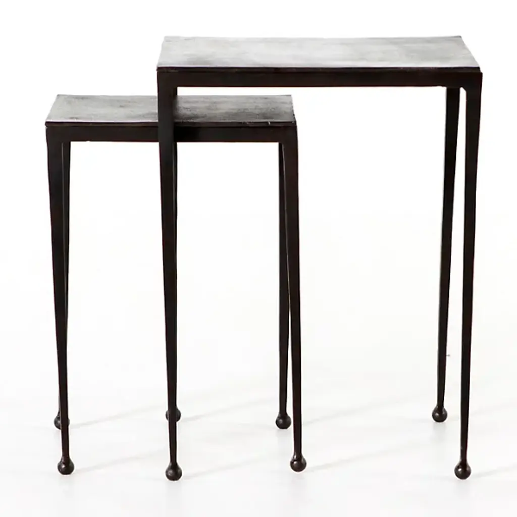 The Dalston Nesting End Table Set from Four Hands is a study in sleek minimalism with a twist of whimsy. This table pirouettes on tapered legs that culminate in playful rounded feet, adding levity to their streamlined figures. Clad in a raw finish, the squared aluminum tops exude an industrial chic vibe, while their nesting design offers versatility in spades. The Dalston Nesting End Table combines style and functionality, offering flexible surface options that can easily adapt to your changing room layouts.