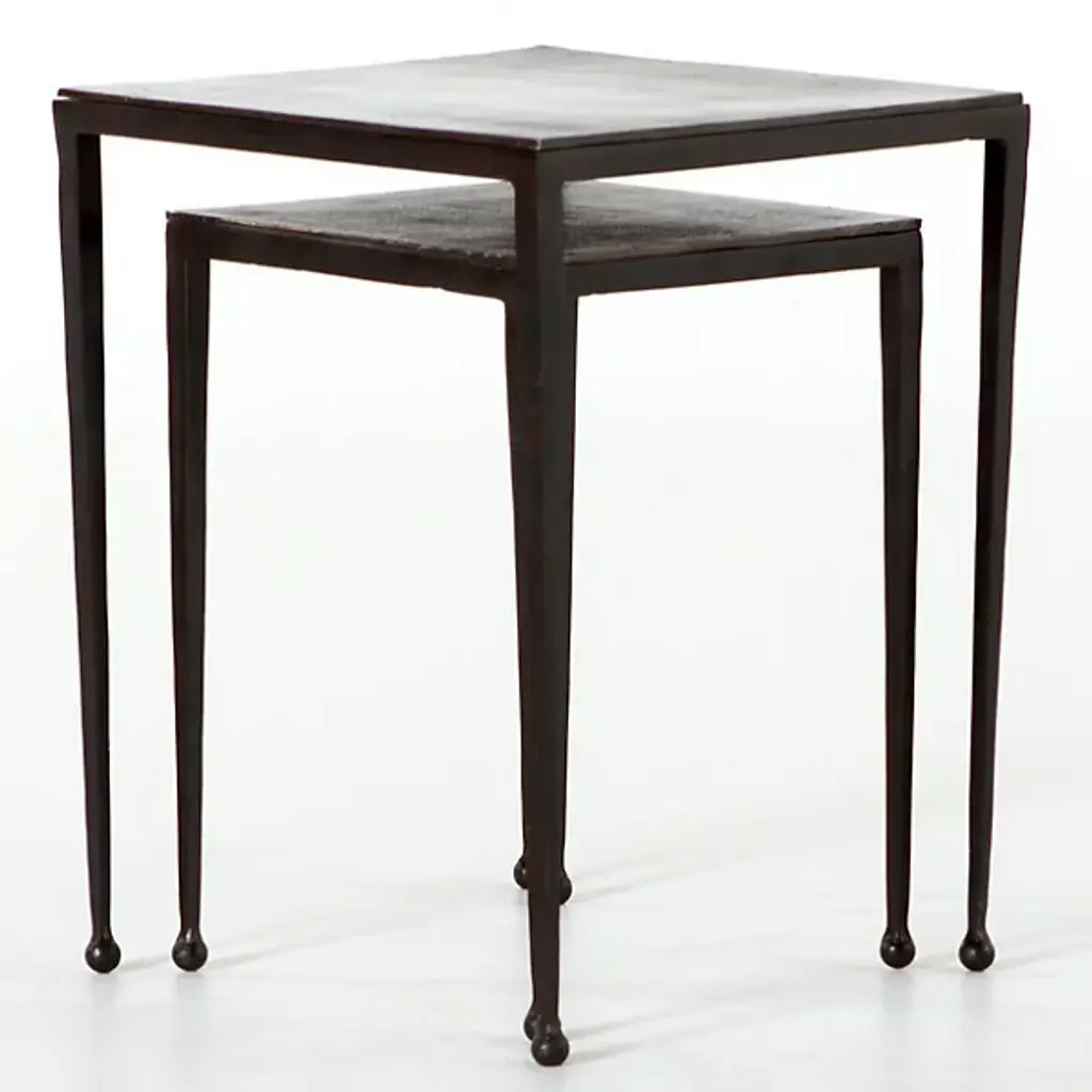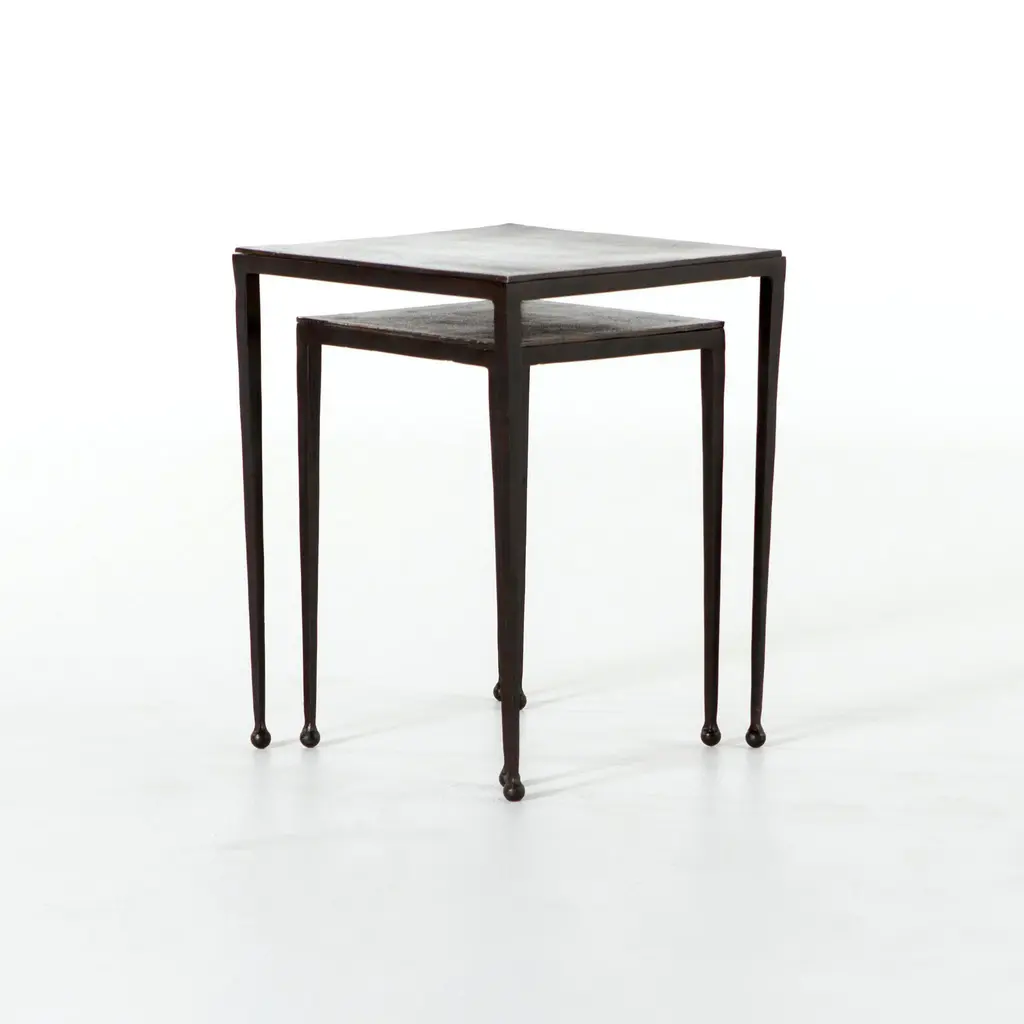 The Dalston Nesting End Table Set from Four Hands is a study in sleek minimalism with a twist of whimsy. This table pirouettes on tapered legs that culminate in playful rounded feet, adding levity to their streamlined figures. Clad in a raw finish, the squared aluminum tops exude an industrial chic vibe, while their nesting design offers versatility in spades. The Dalston Nesting End Table combines style and functionality, offering flexible surface options that can easily adapt to your changing room layouts.