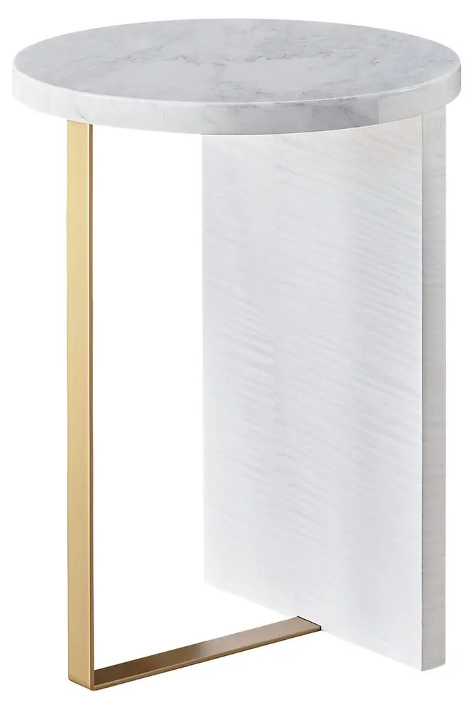 Dama Small Calacatta Marble And Walnut Wood Side Table