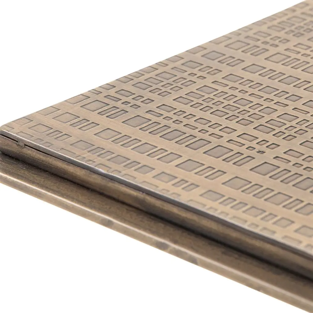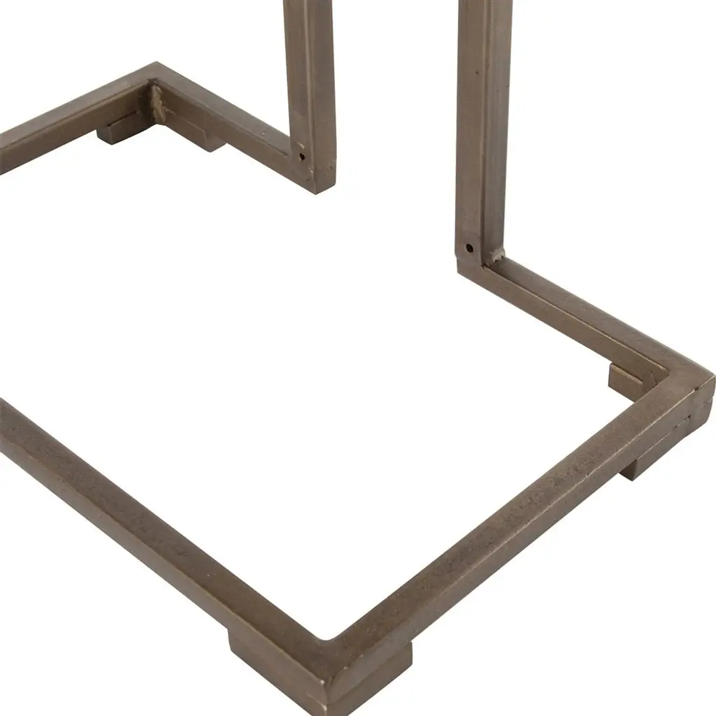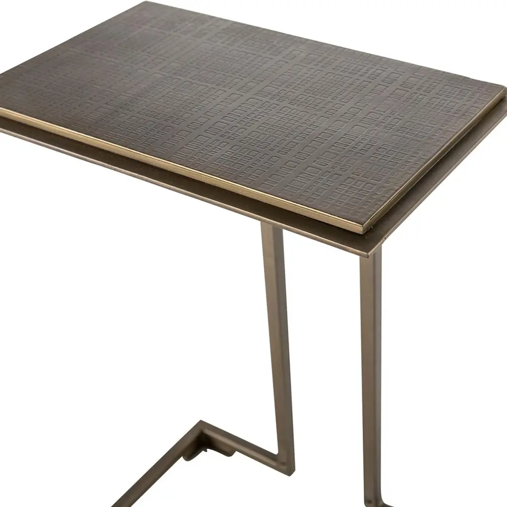 The artful Damian end table features a classic C shape and intricate acid etched detailing. Finished in antique brass, this lustrous iron accent piece brings a modern industrial touch to your living room, den, or bedroom.