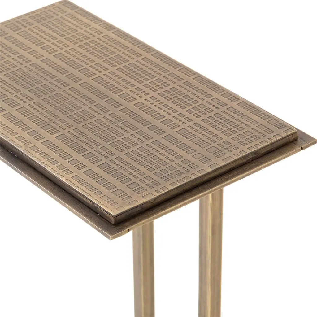 Damian Industrial Loft Slim Rectangular Antique Brass Side End Table